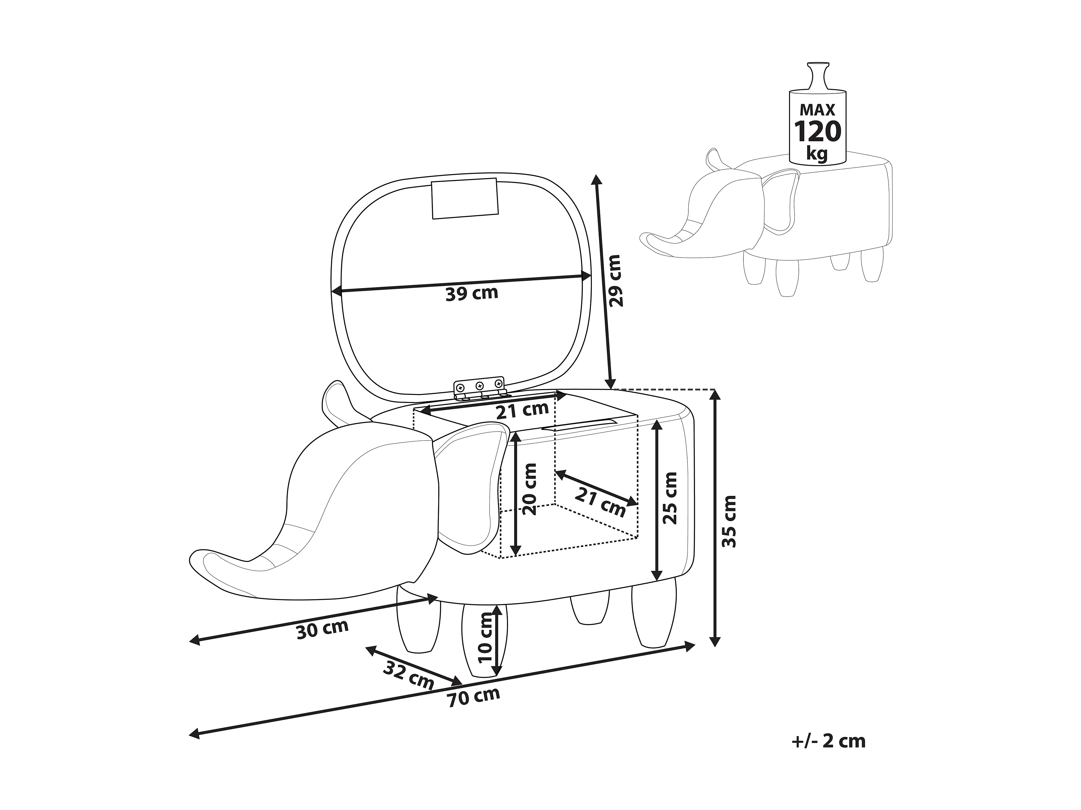 Tabouret de rangement animal ELEPHANT Cuir PU Marron foncé Éléphant