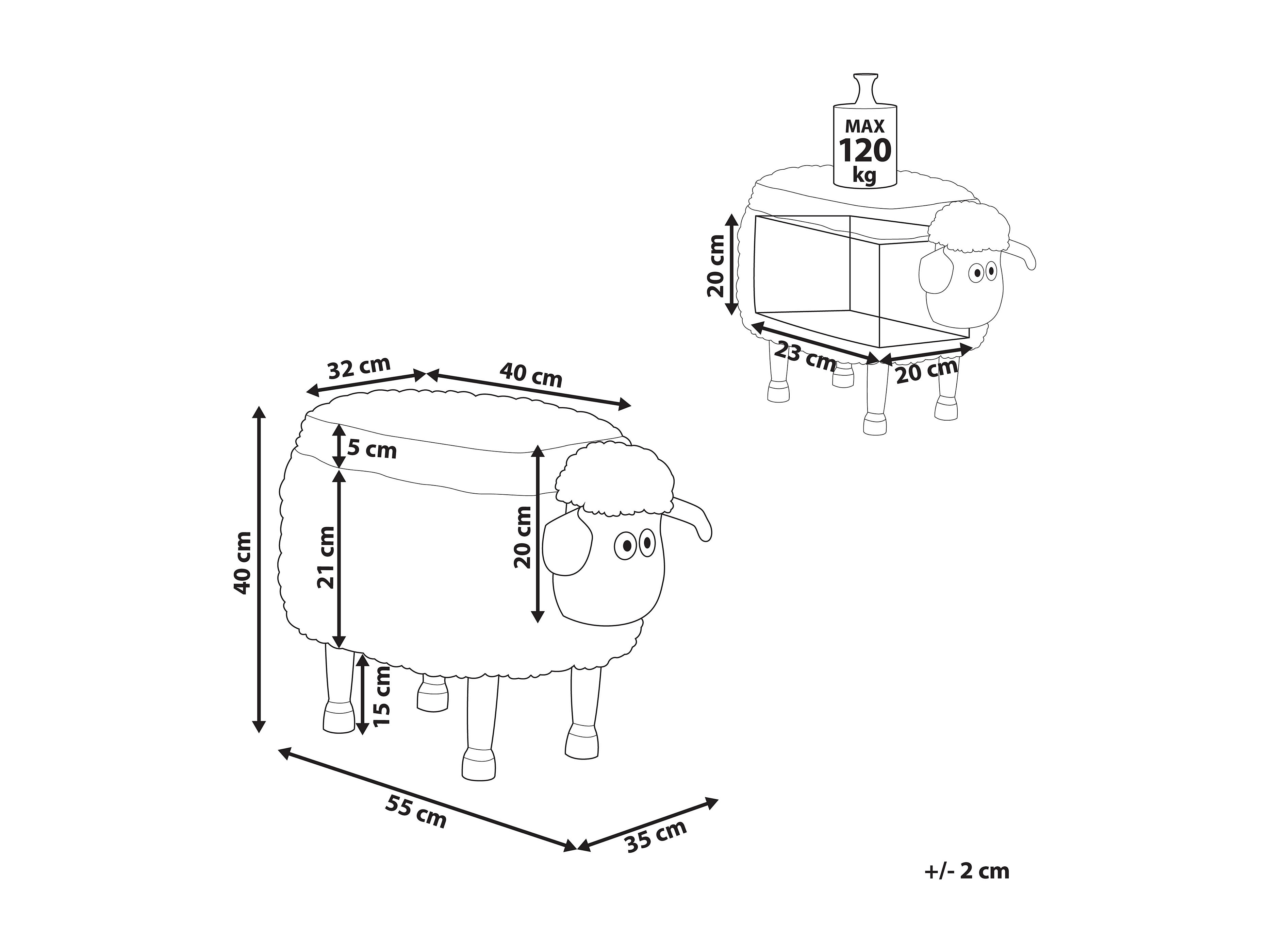 Tabouret de rangement animal SHEEP Tissu Marron