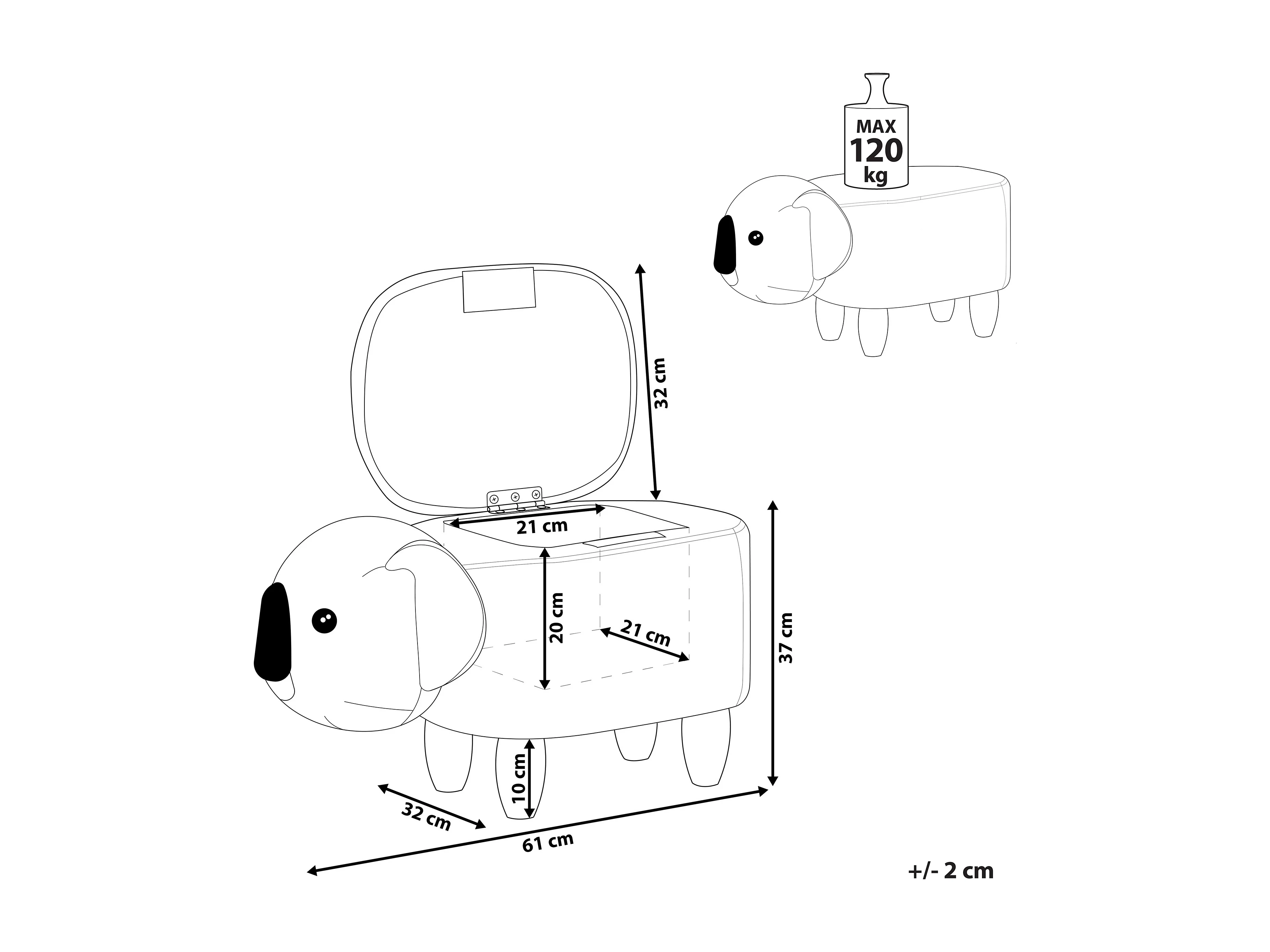 Tabouret de rangement animal COALA Velours Gris clair Koala