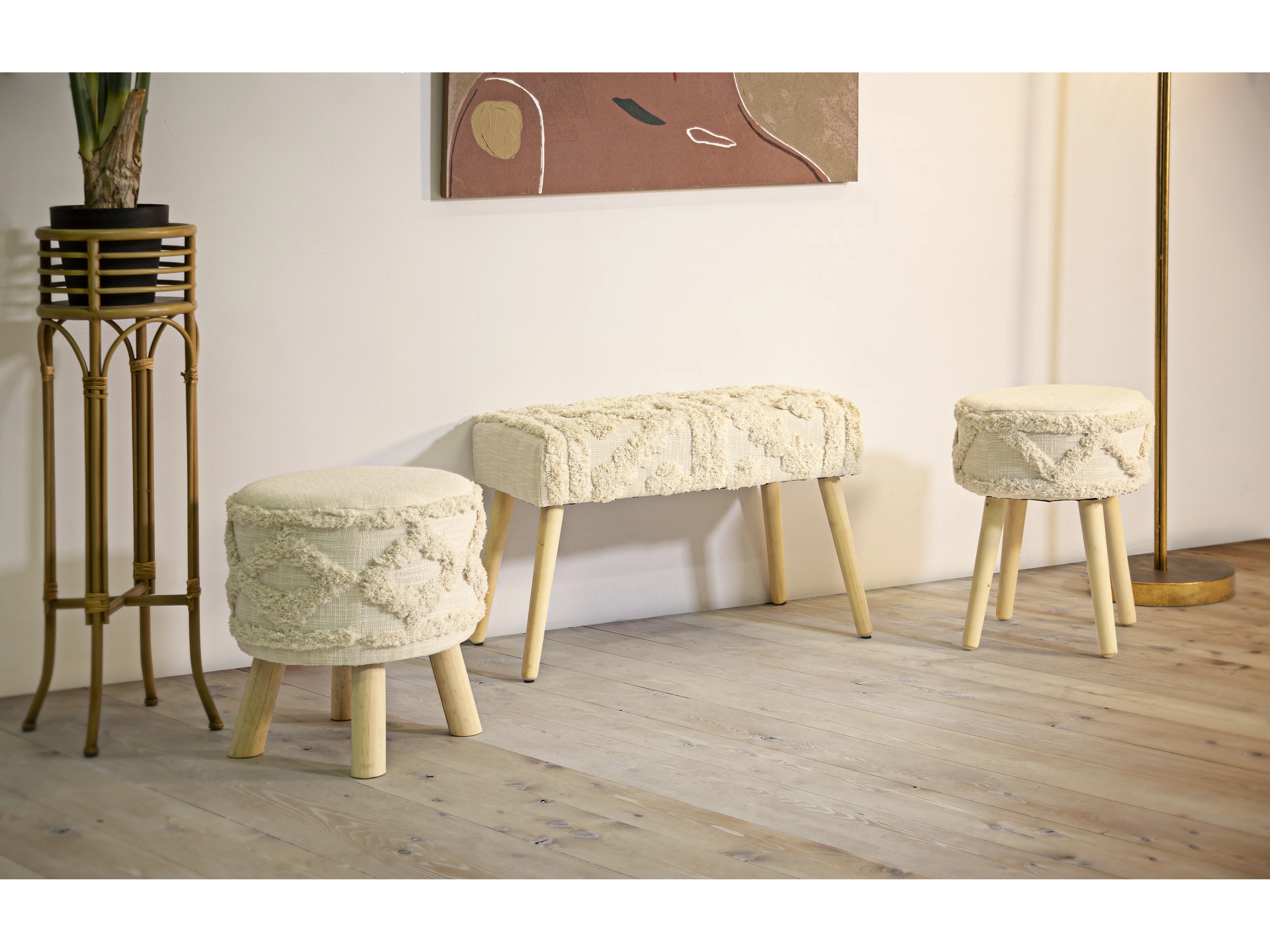 Tabouret Effet Tufté "Damasco" 41cm Beige