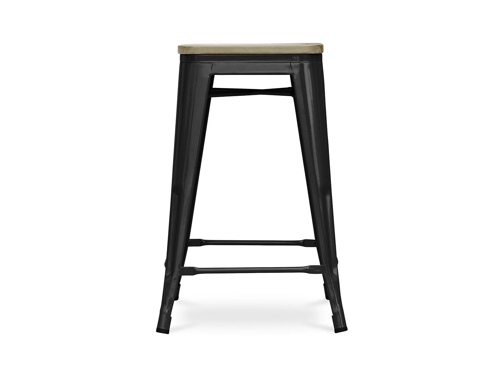 Tabouret industriel acier brillant et assise en bois massif naturel Reko 60cm-Couleur Noir