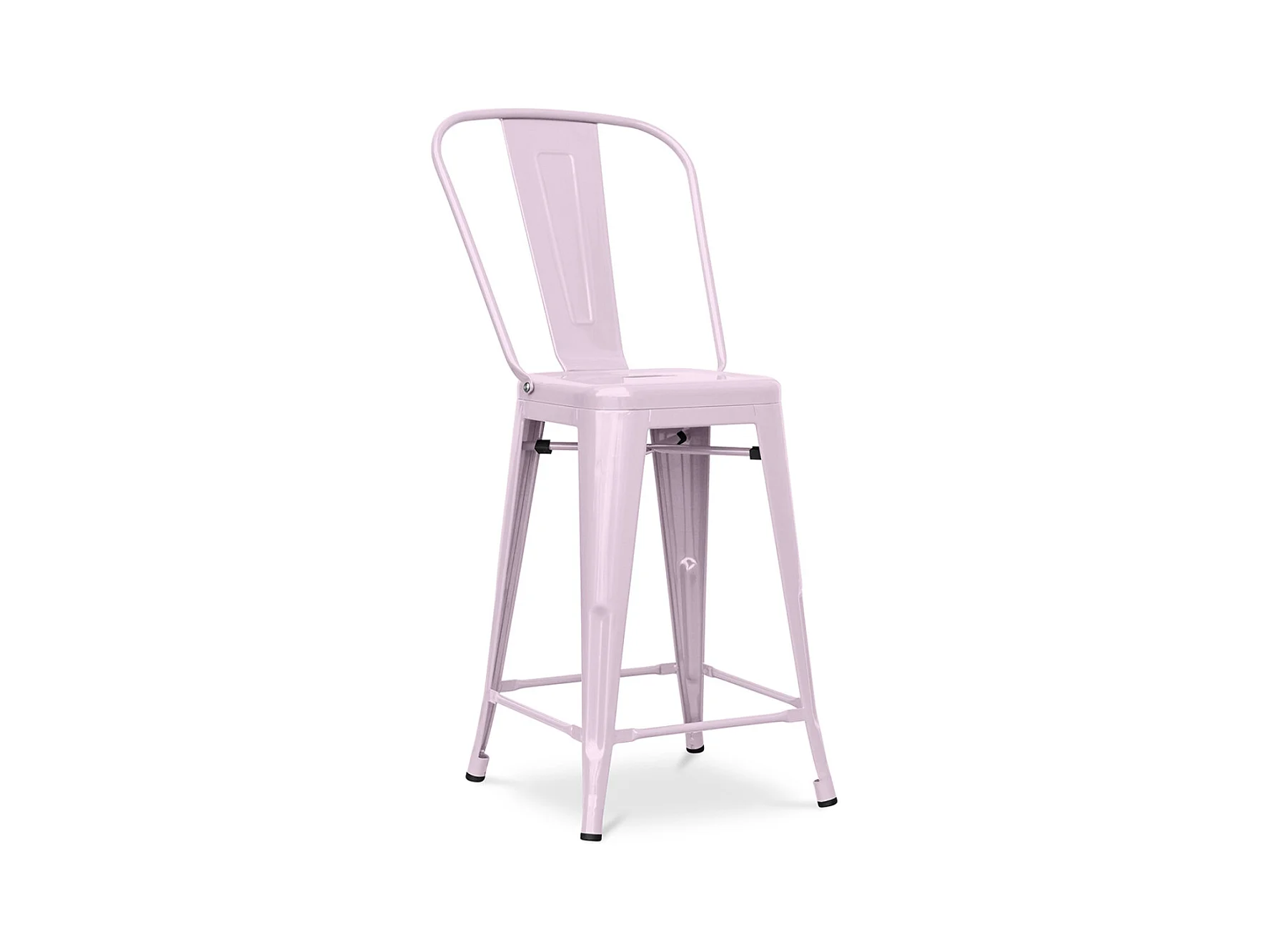 Tabouret industriel avec dossier haut acier brillant Kalax 60cm --Couleur Rose clair