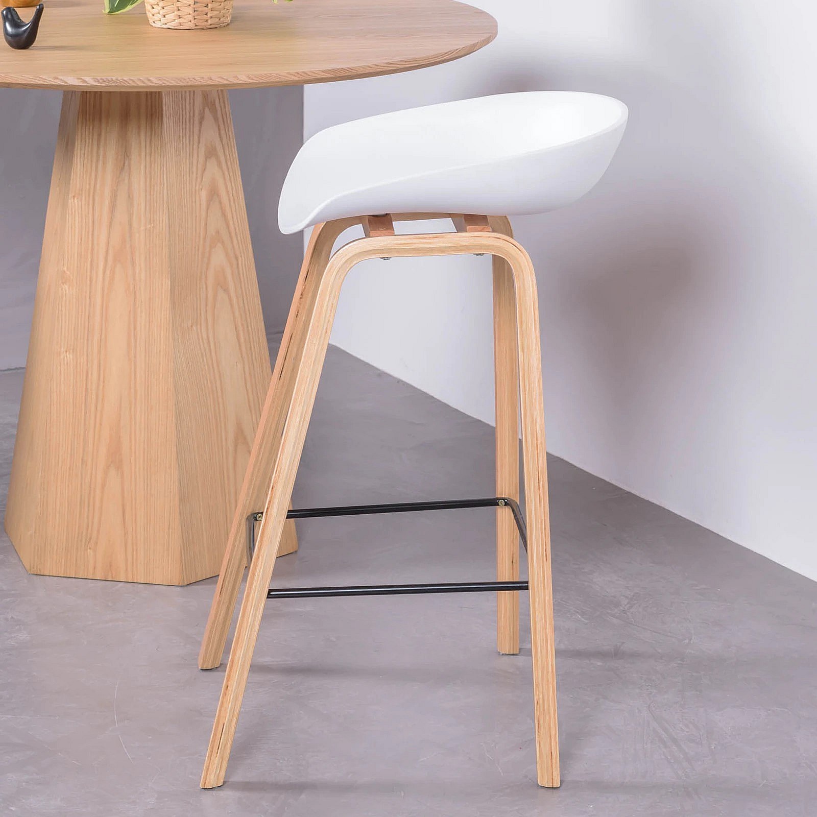 Tabouret de bar - Plastique & Bois - Blanc - Metz