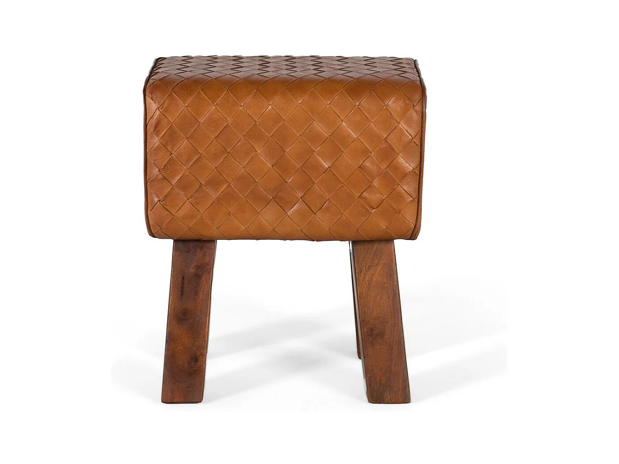 Tabouret recouvert de cuir naturel et pieds en manguier massif
