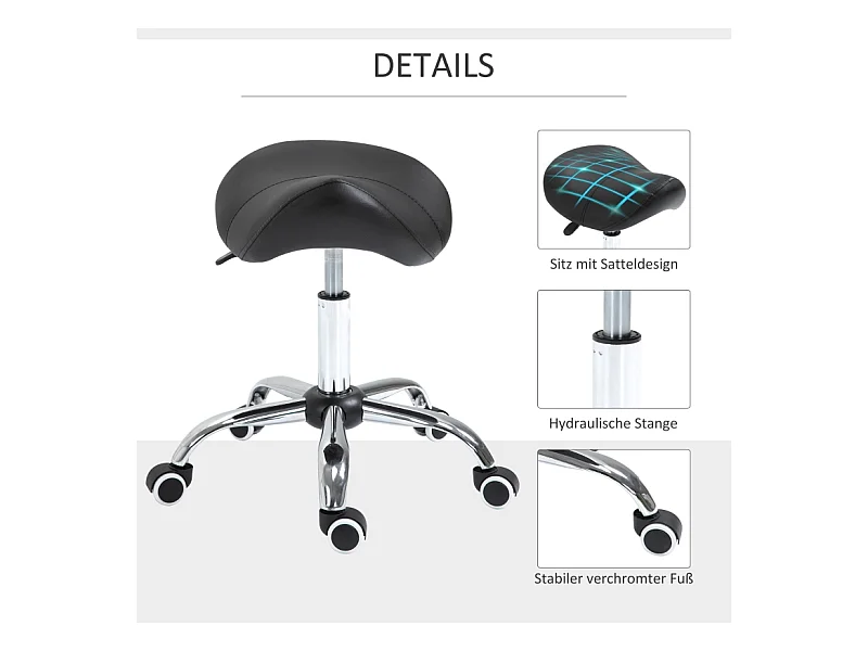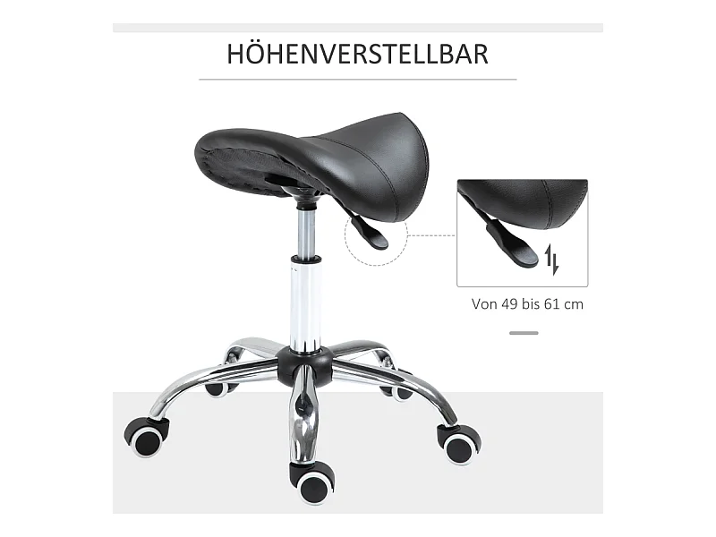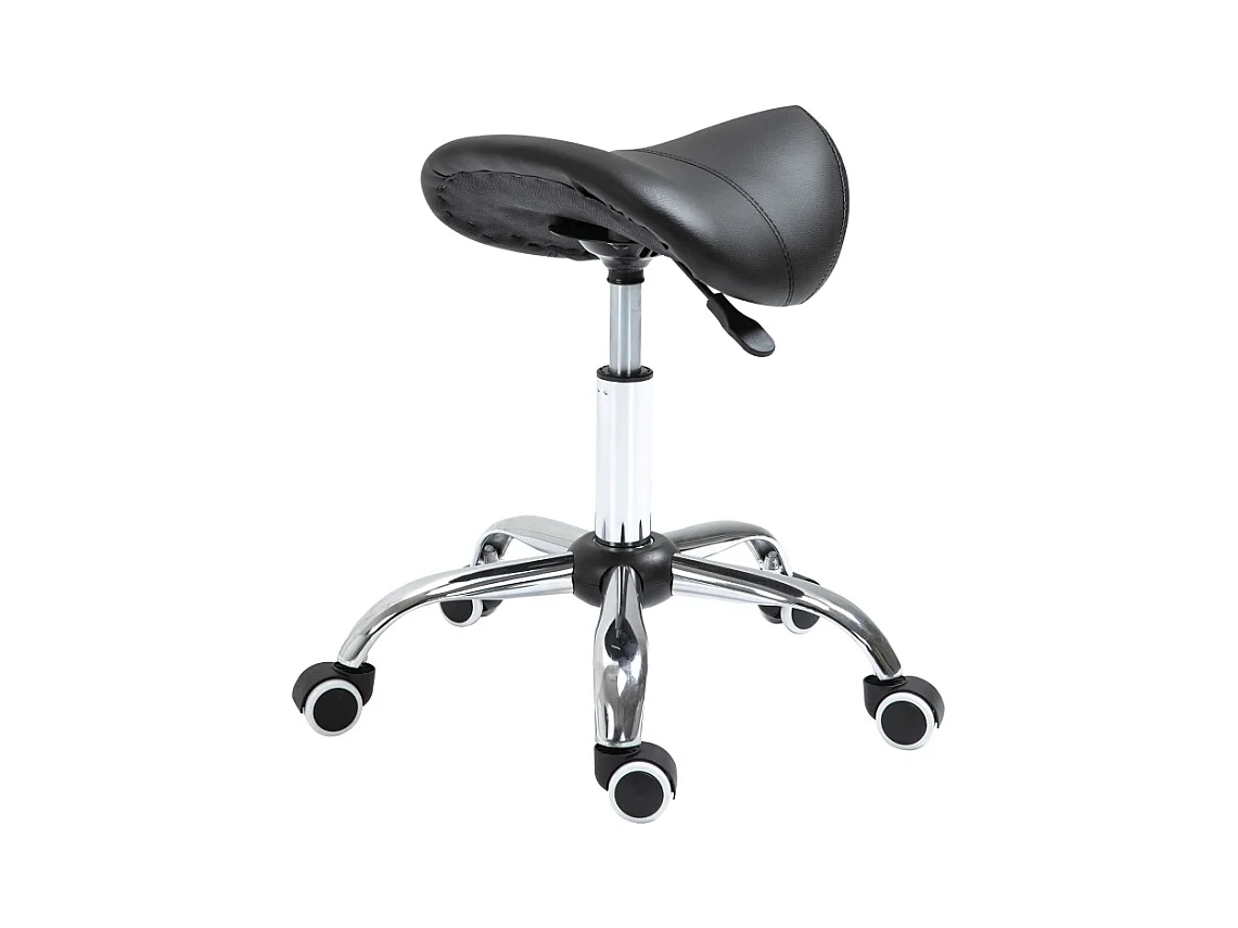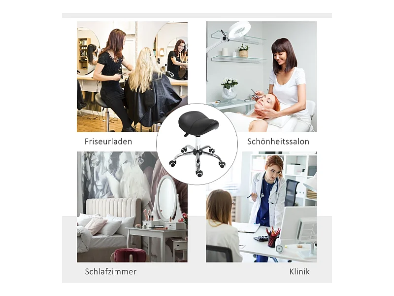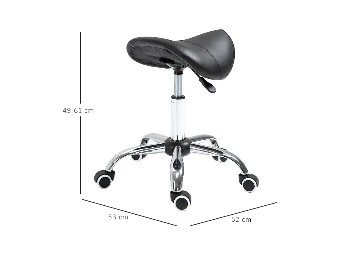 Tabouret selle pivotant, réglable en hauteur et rembourré, couleur noir, idéal pour salon de beauté ou bureau, confortable et pratique