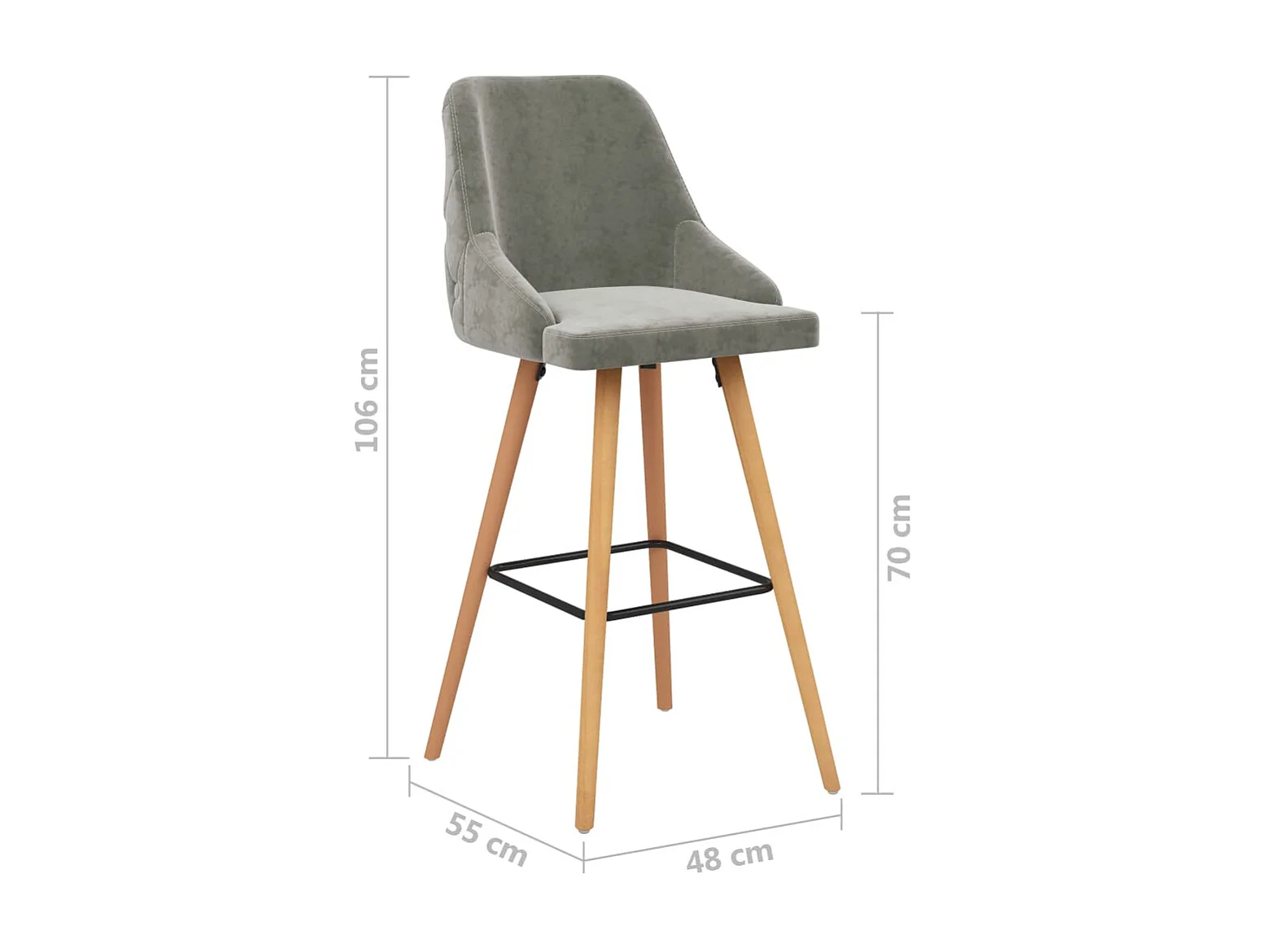 Tabourets de bar 2 pcs Gris clair Velours Lounga
