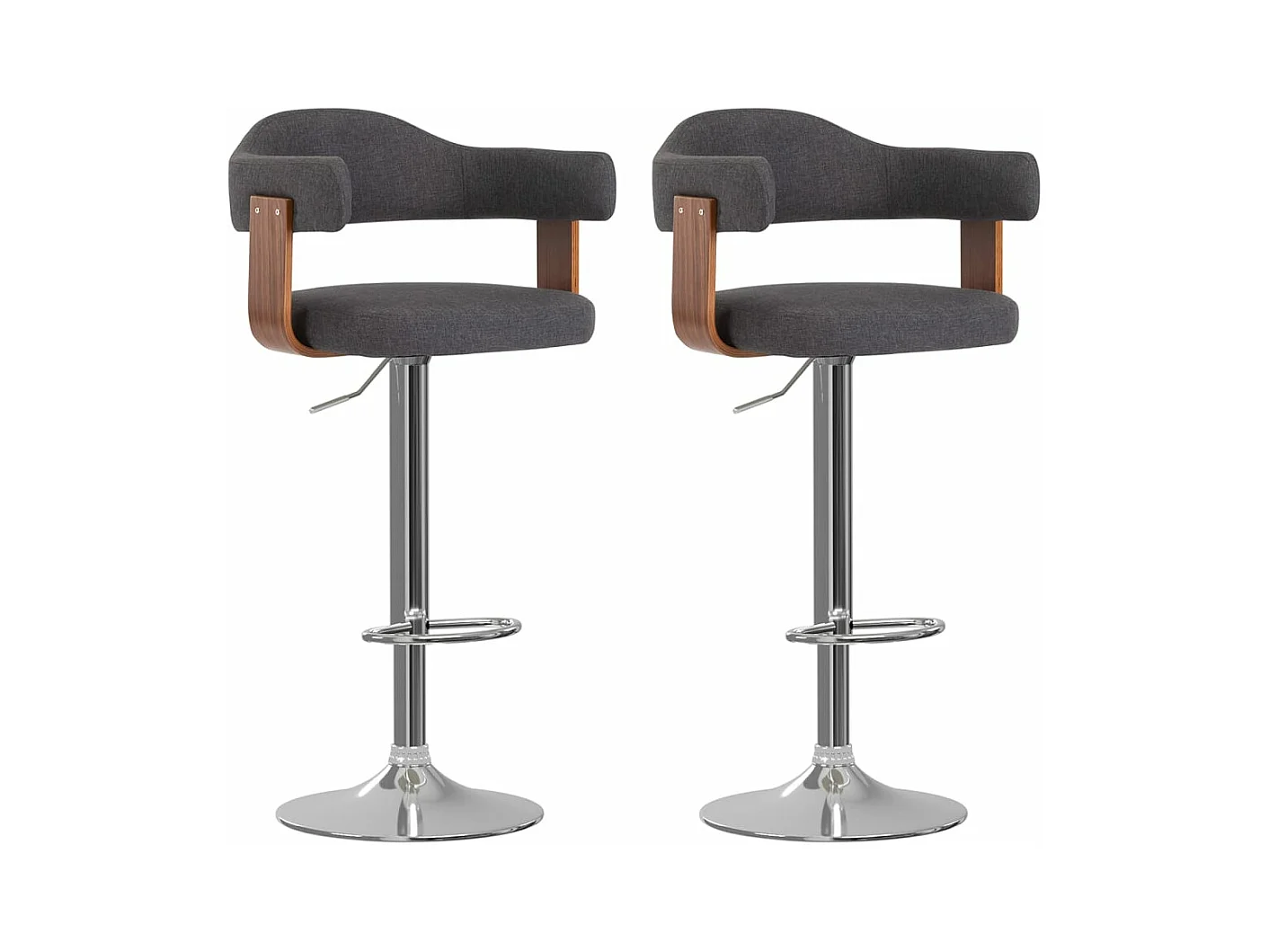 Tabourets de bar 2 pcs Gris foncé Bois courbé et tissu 2