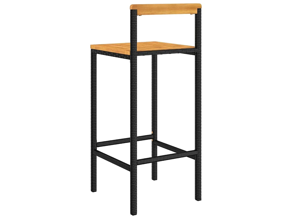 Tabourets de bar lot de 4 noir résine tressée et bois d'acacia