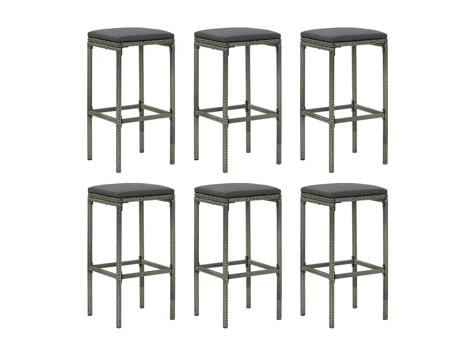 Tabourets de bar avec coussins lot de 6 gris résine tressée