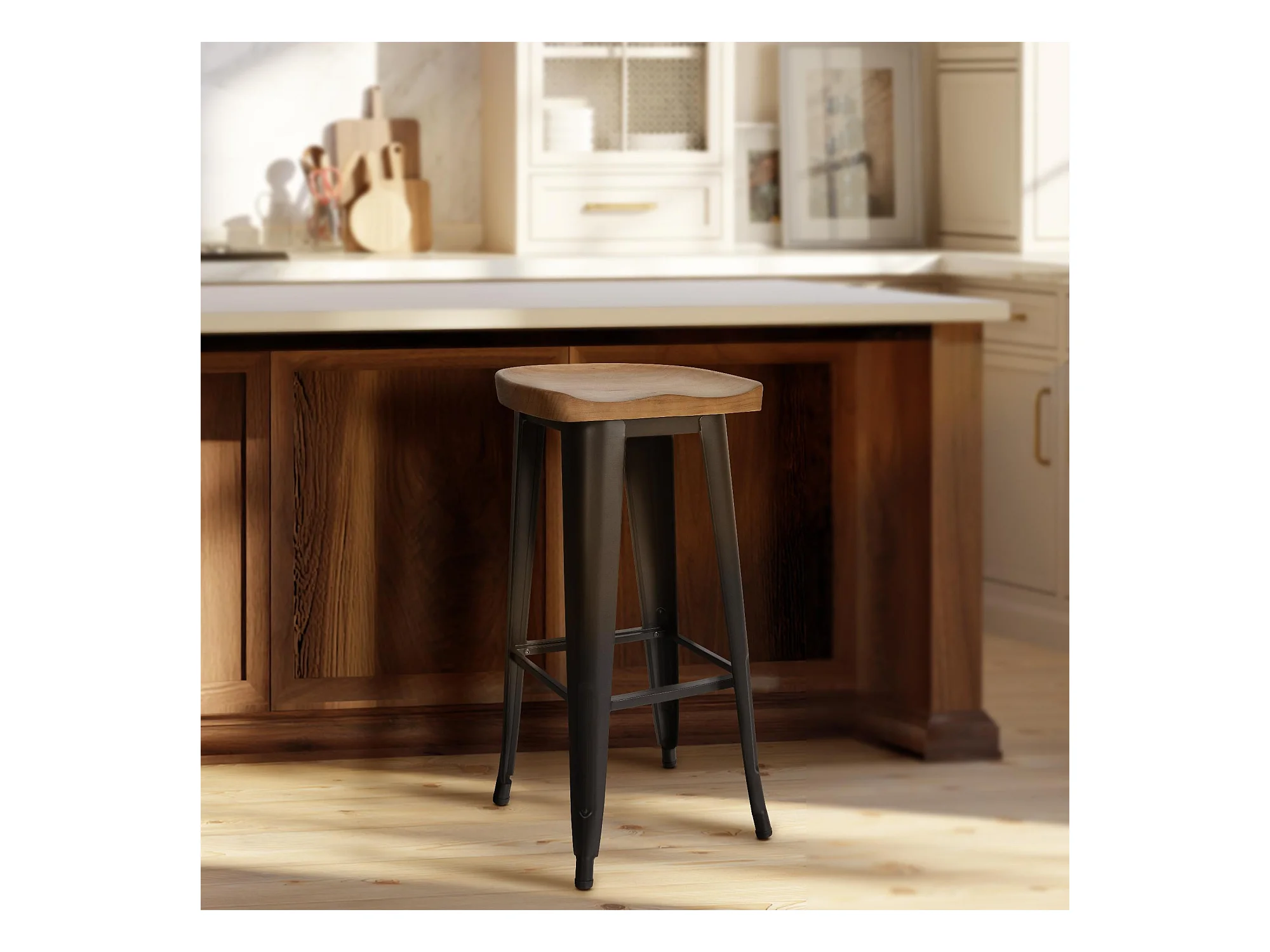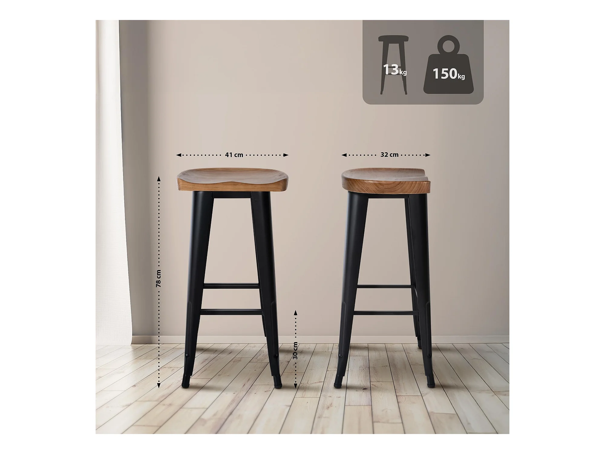 Tabouret industriel en bois de frêne (75cm) - Lisbonne - Noir