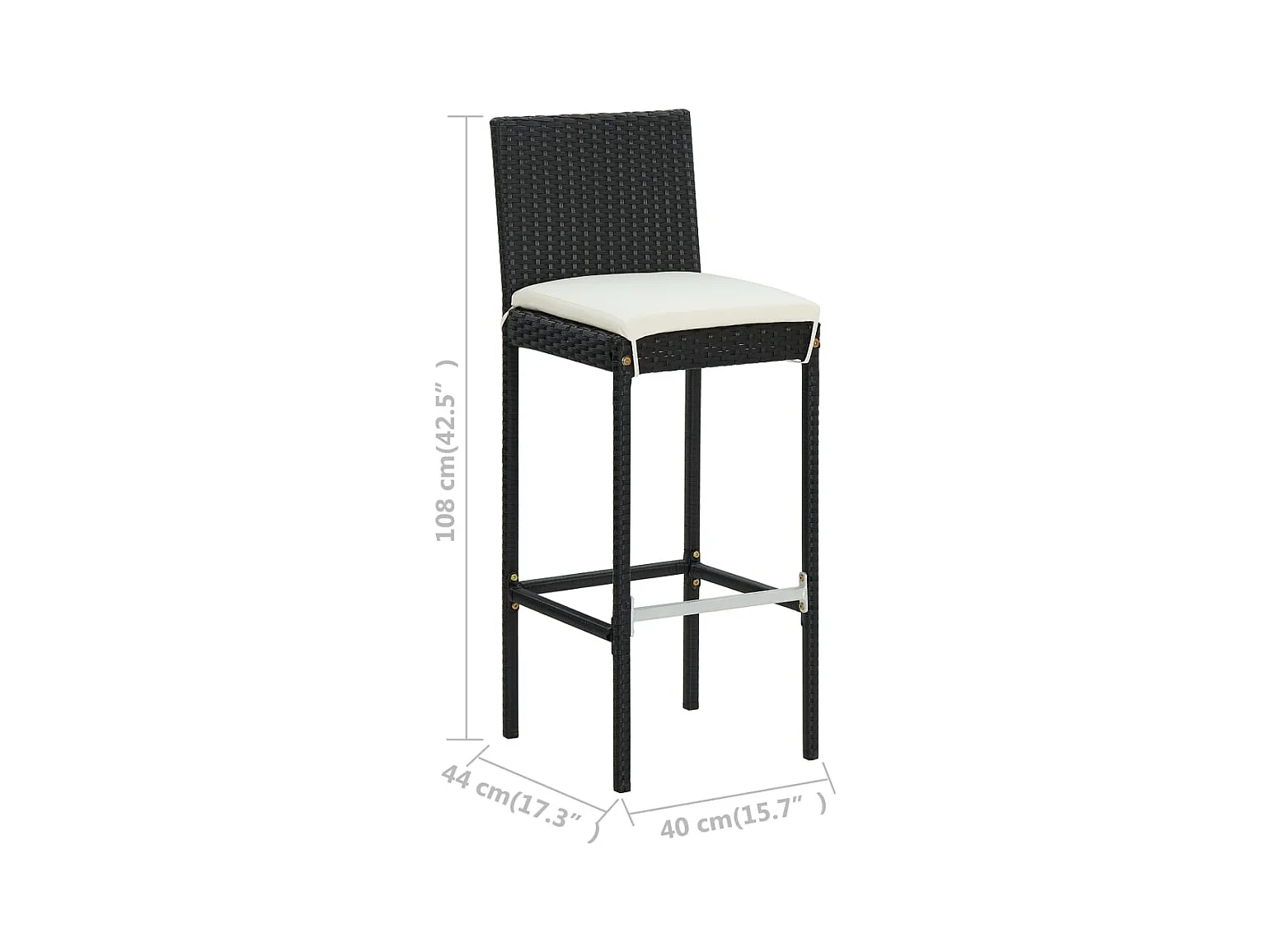 Tabourets de jardin lot de 4 avec coussins Résine tressée Noir