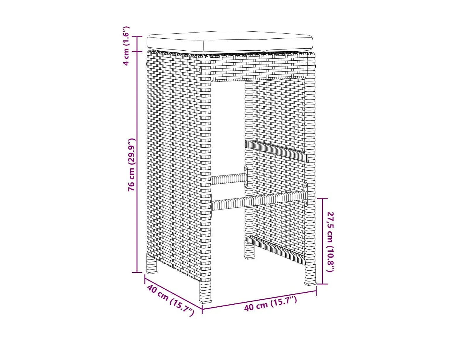 Tabourets de bar de jardin et coussins lot de 6 résine tressée