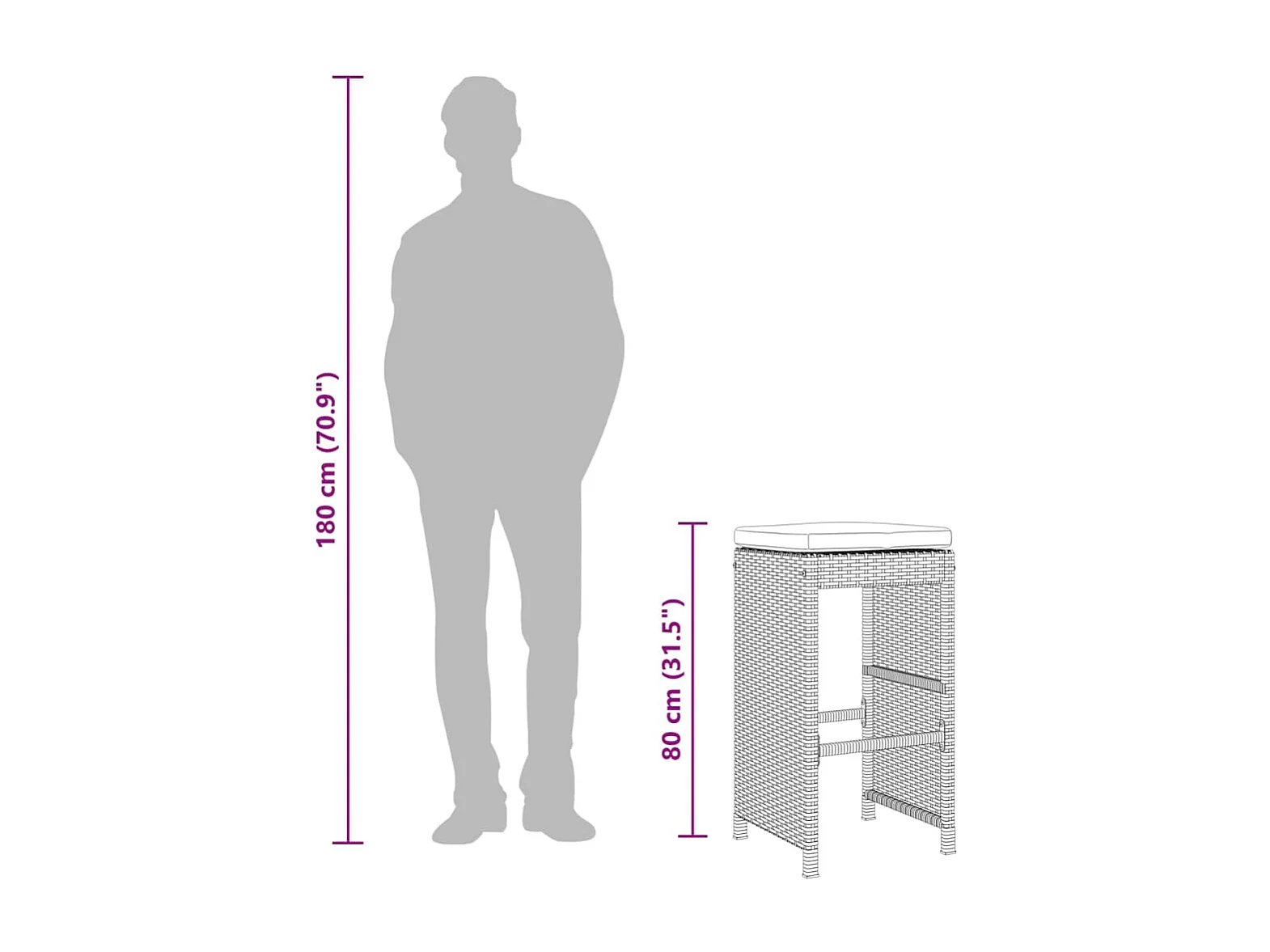 Tabourets de bar jardin coussins lot de 2 gris résine tressée