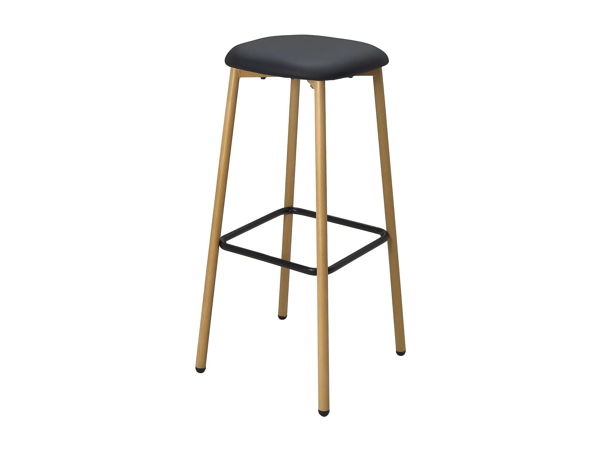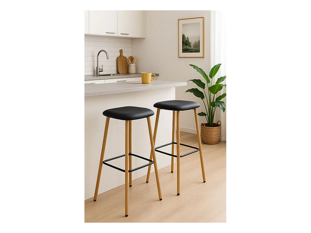 Tabourets de bar, hauteur d'assise 78 cm, pieds métal immitation hêtre, lot de 2 NES (noir)