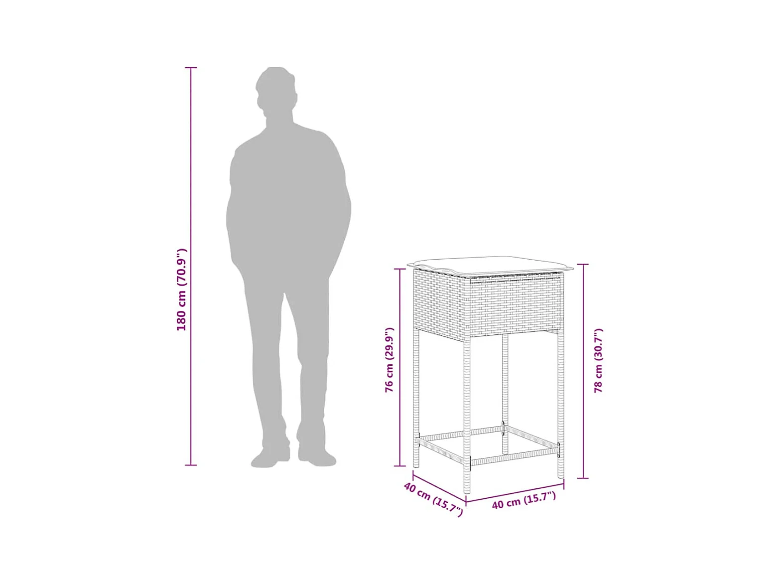 Tabourets de bar jardin avec coussins lot de 2 beige poly rotin
