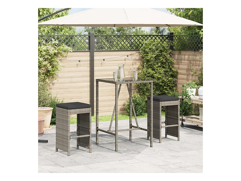 Fairlawn Ensemble de bar de jardin 3 pcs et coussins Résine tressée Gris