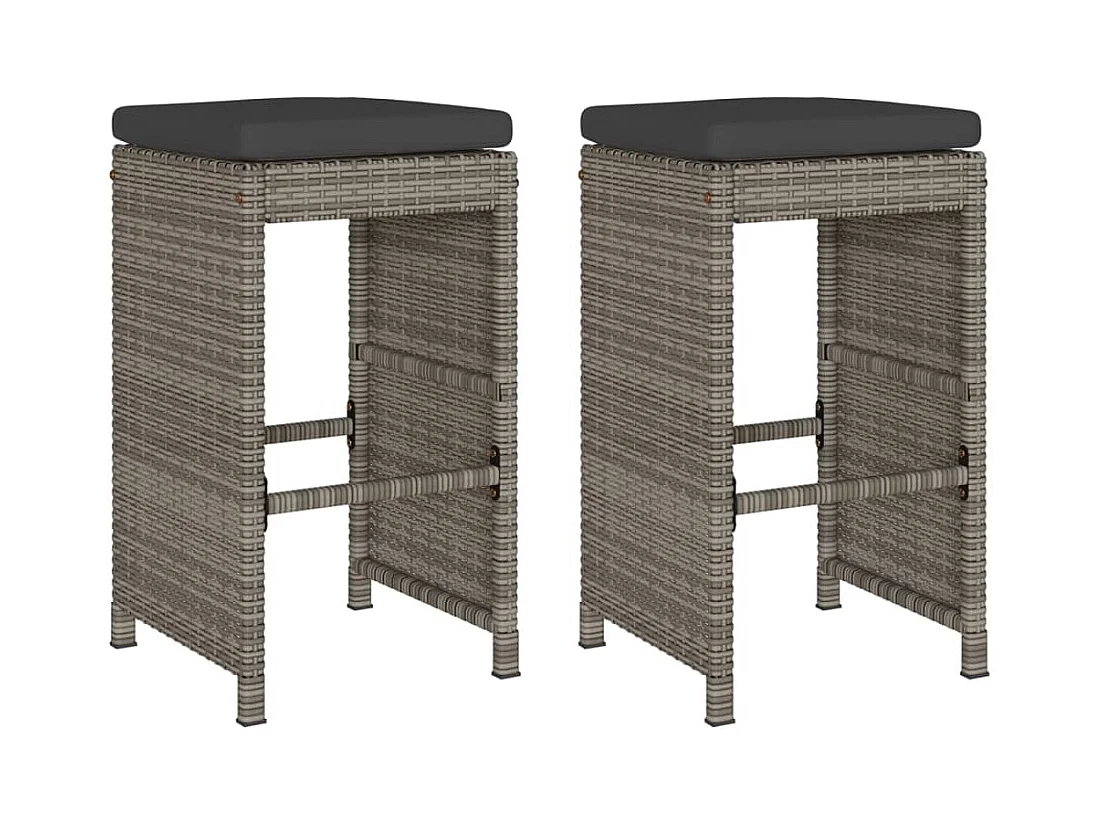 Tabourets de bar jardin coussins lot de 2 gris résine tressée
