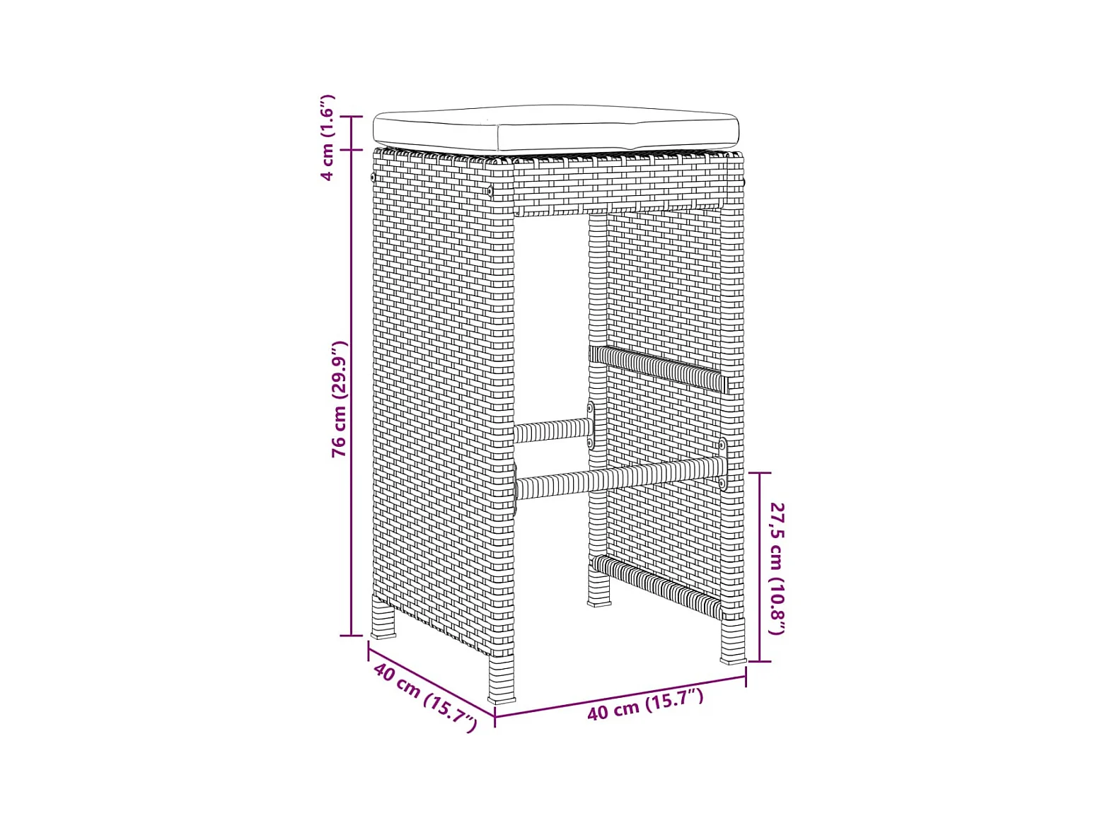 Tabourets de bar de jardin et coussins lot de 6 résine tressée