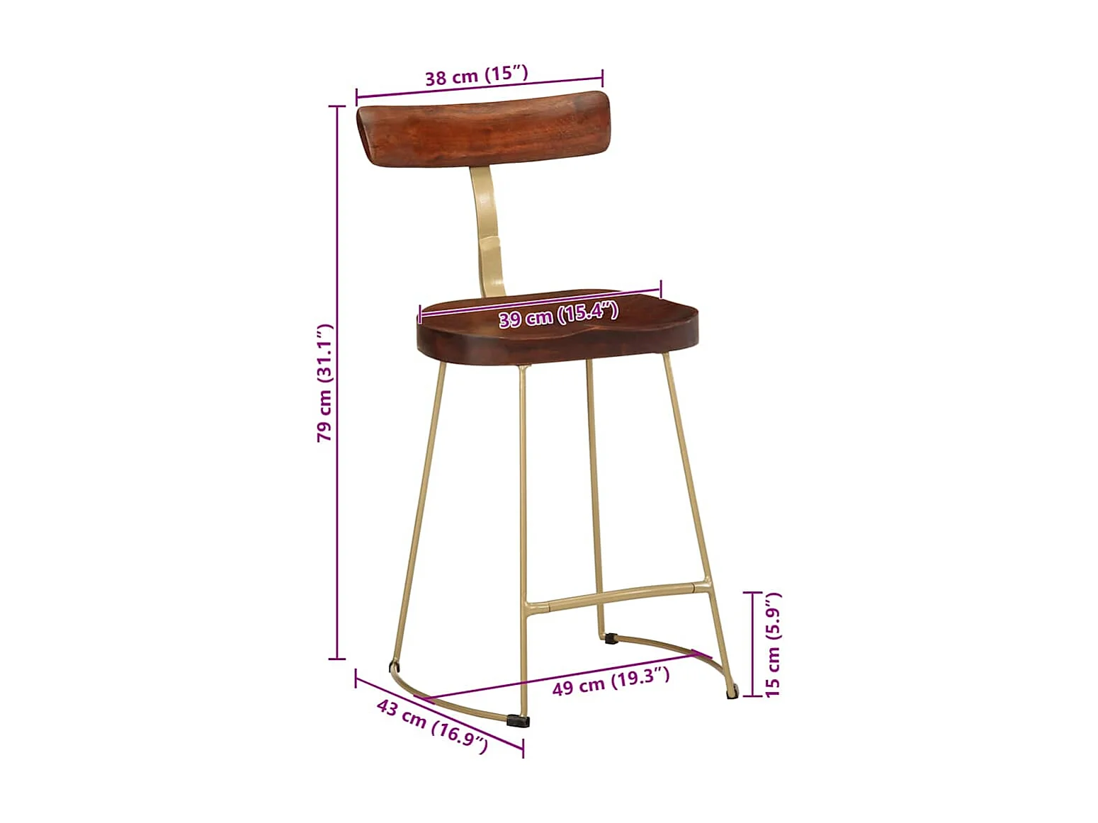 Tabourets de bar lot de 2 49x43x79 cm bois de manguier massif