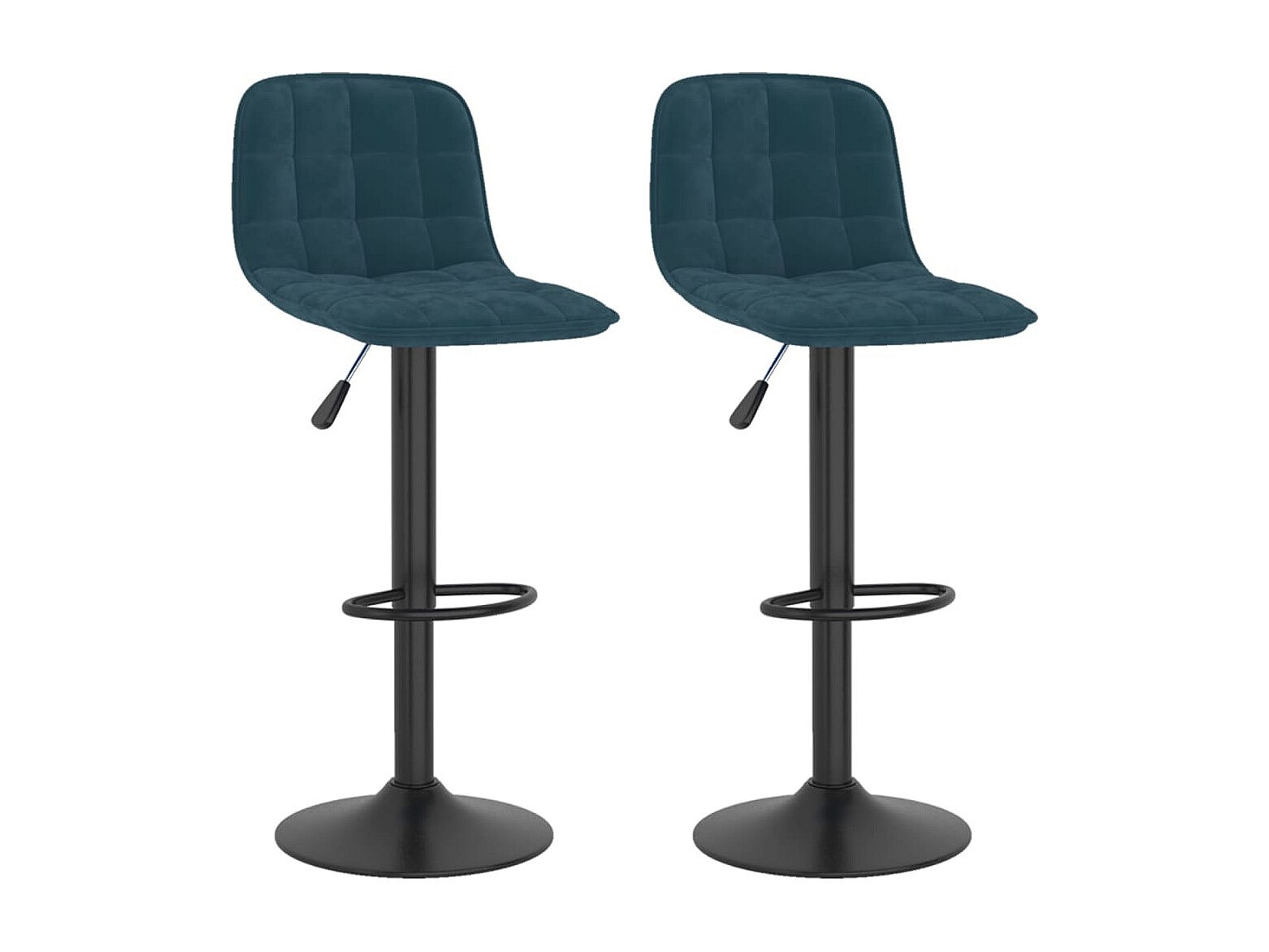 Lot de 2 Tabouret de bar - Tissu & Métal chromé - Bleu - Hover