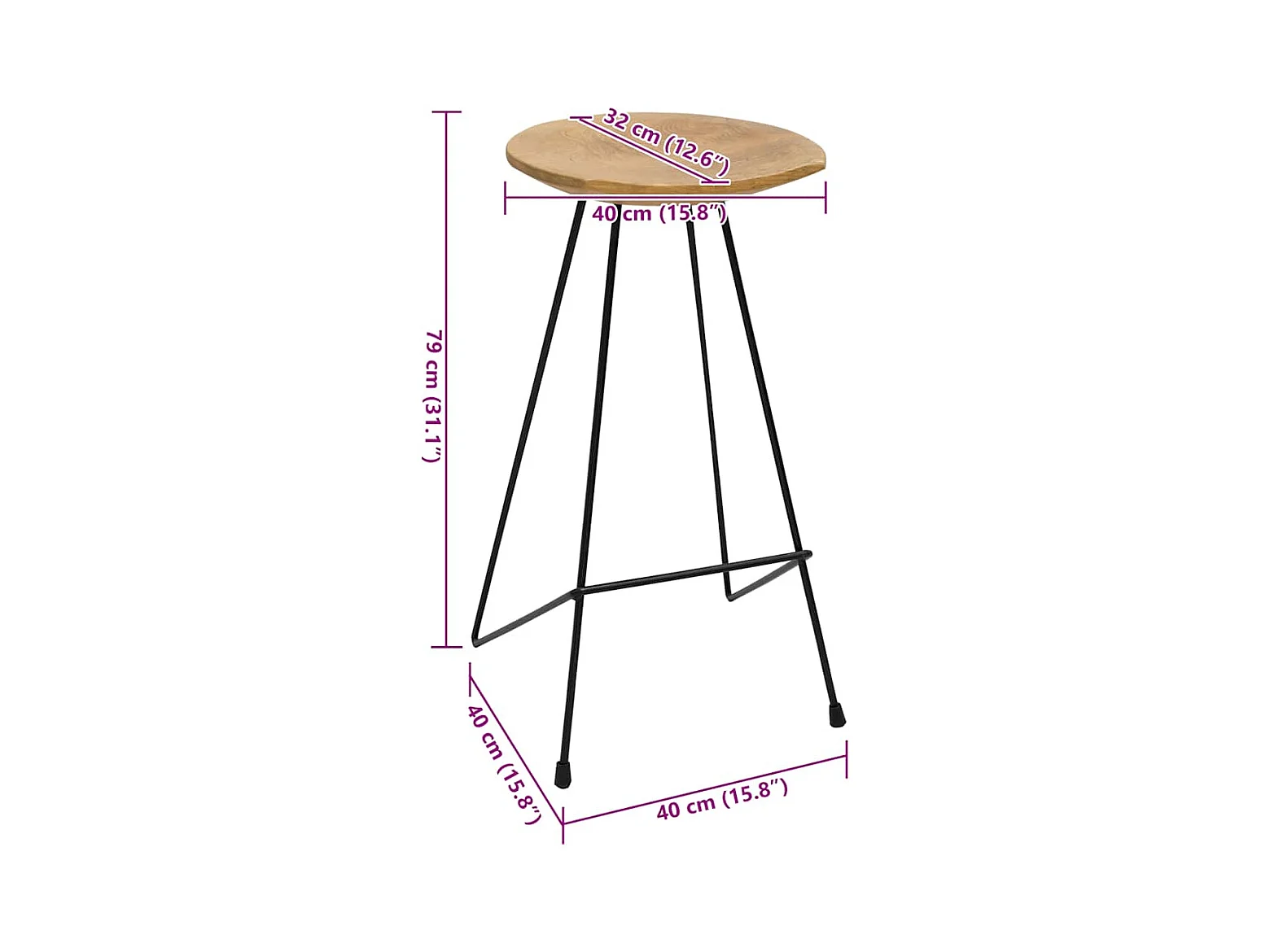 lot de 2 Tabourets de bar 40x36x75 cm bois massif Douglas PSA3665