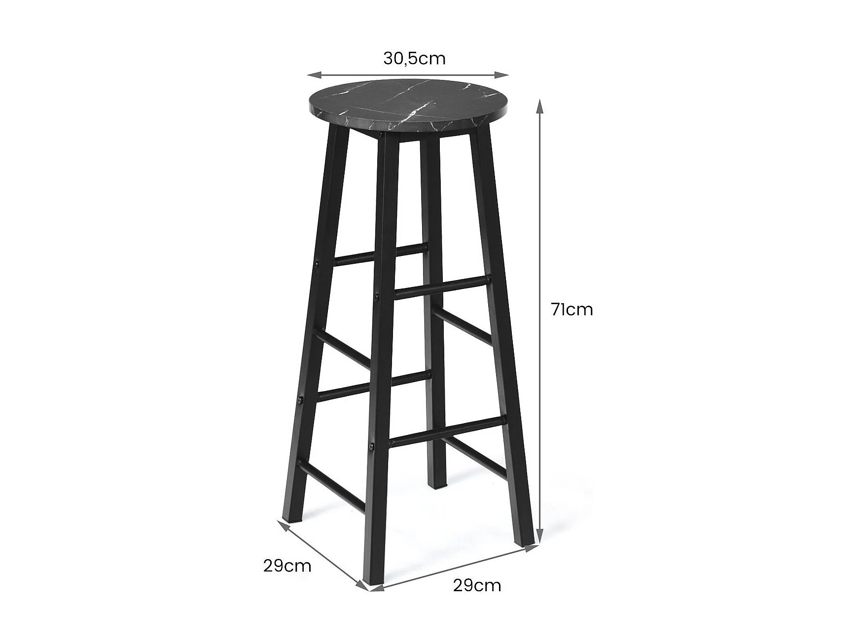 Tabouret Haut MF442, Noir, 46x48x96 cm, Seven Design