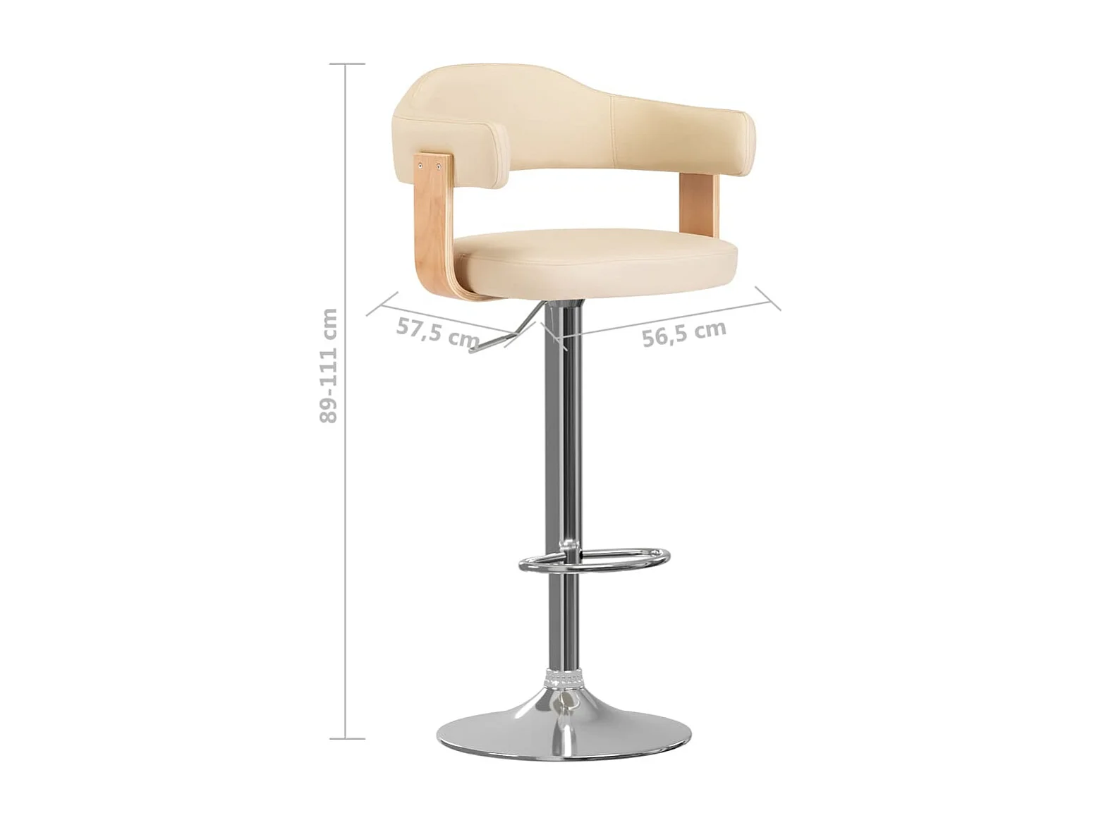 Tabourets de bar lot de 2 crème bois courbé et similicuir