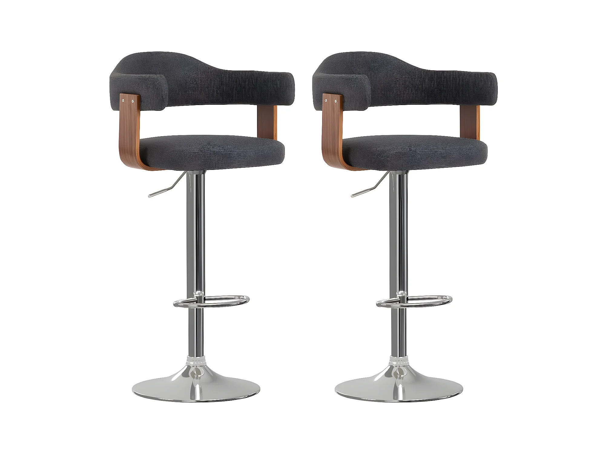 Tabourets de bar lot de 2 gris foncé bois courbé et tissu REO15397
