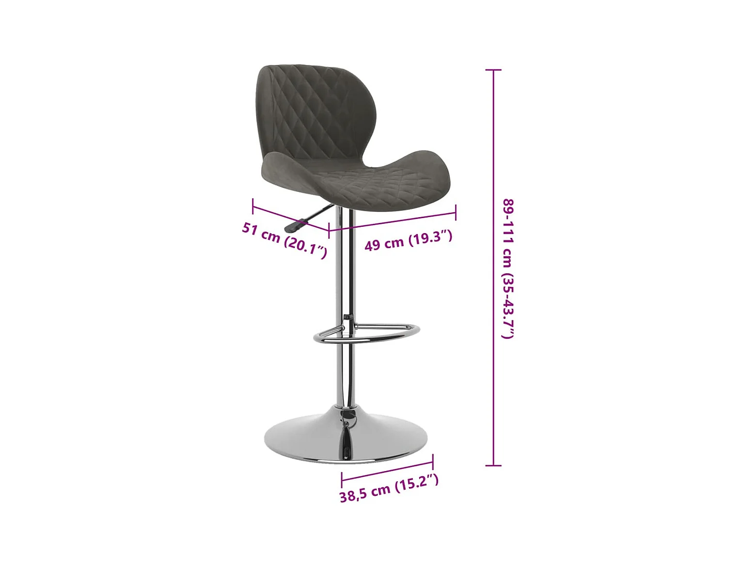 Tabourets de bar lot de 2 gris foncé velours