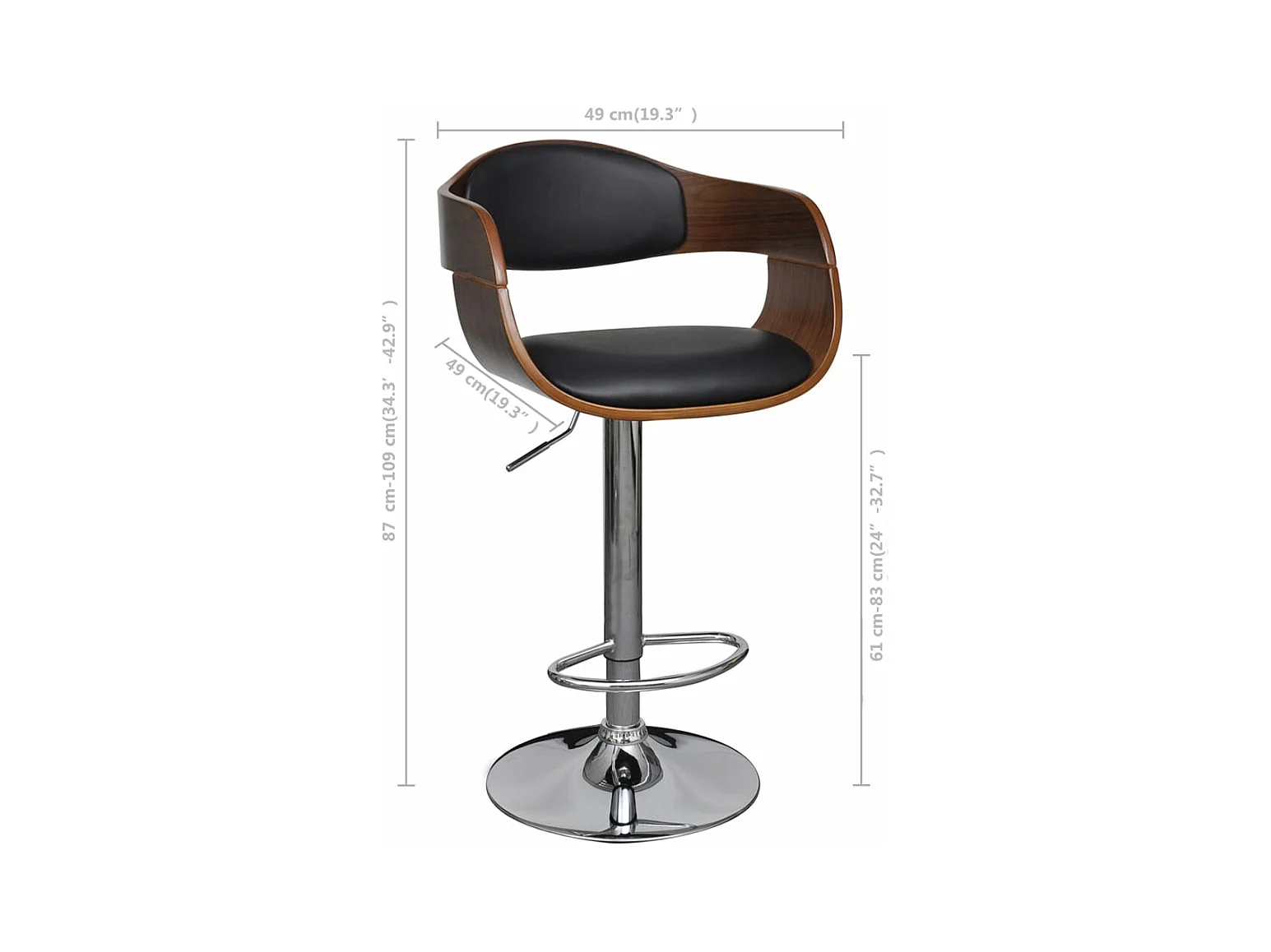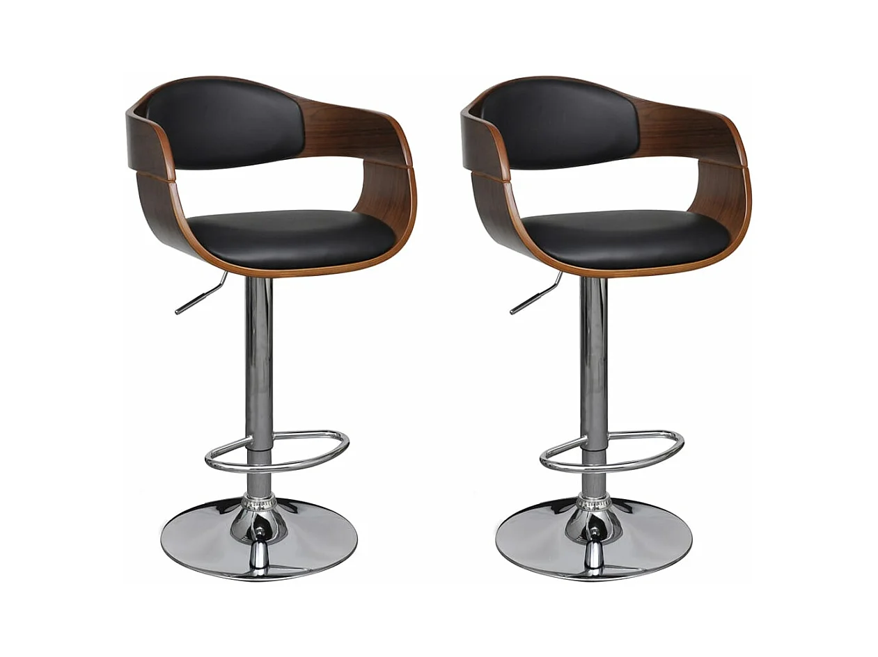 Tabourets de bar lot de 2 noir bois courbé et similicuir