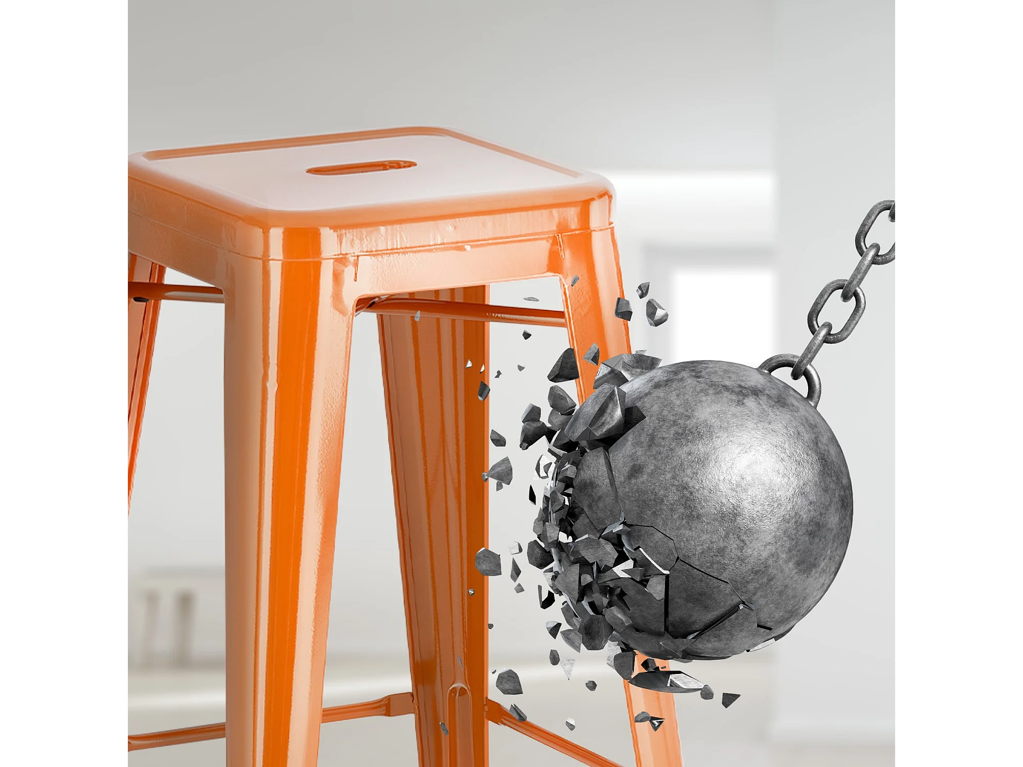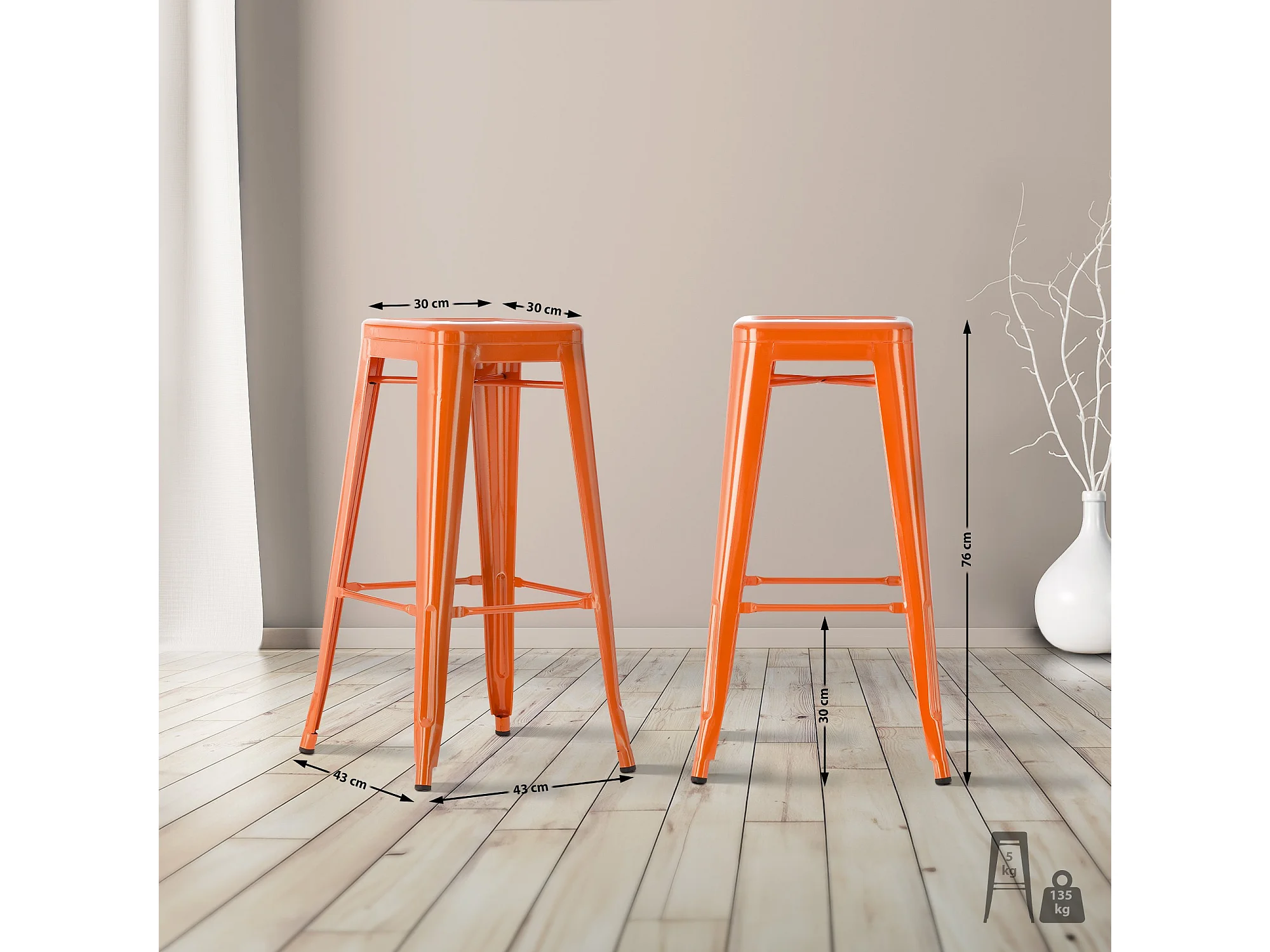 Tabouret industriel acier brillant renforcé Kalax 60cm --Couleur Orange