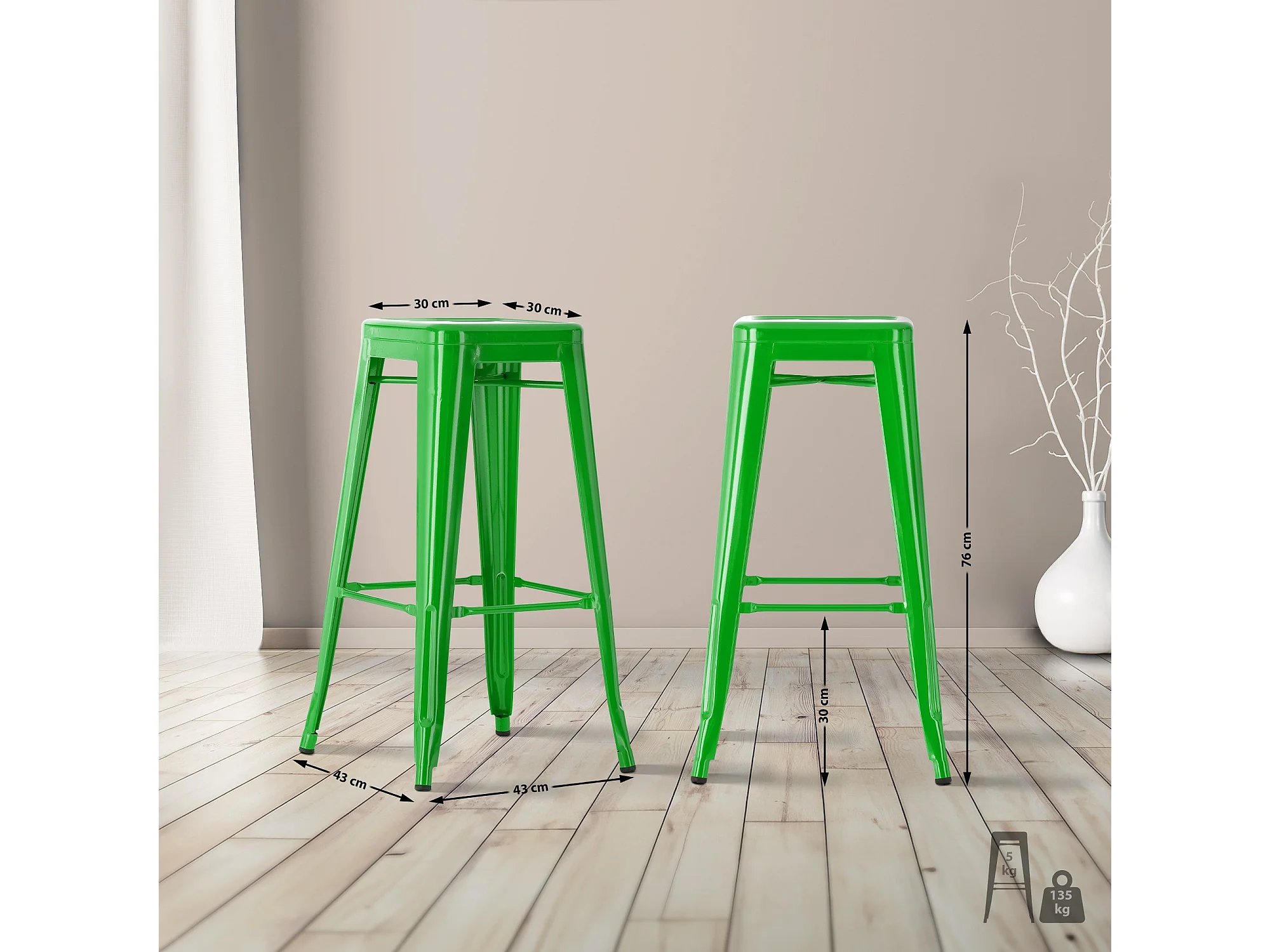 Tabouret haut industriel acier brillant renforcé Kalax 76cm --Couleur Vert
