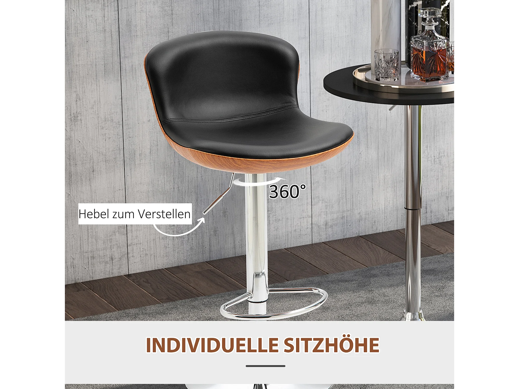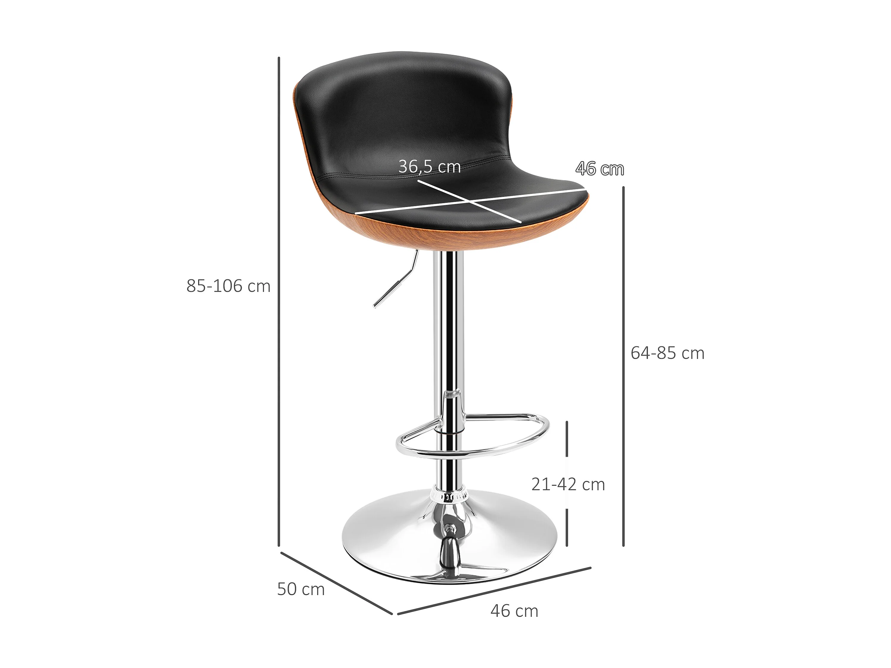 Tabourets de bar réglables pivotants 2 pièces, cuir synthétique noir, avec repose-pieds et dossier (46x53.5x85-106cm)