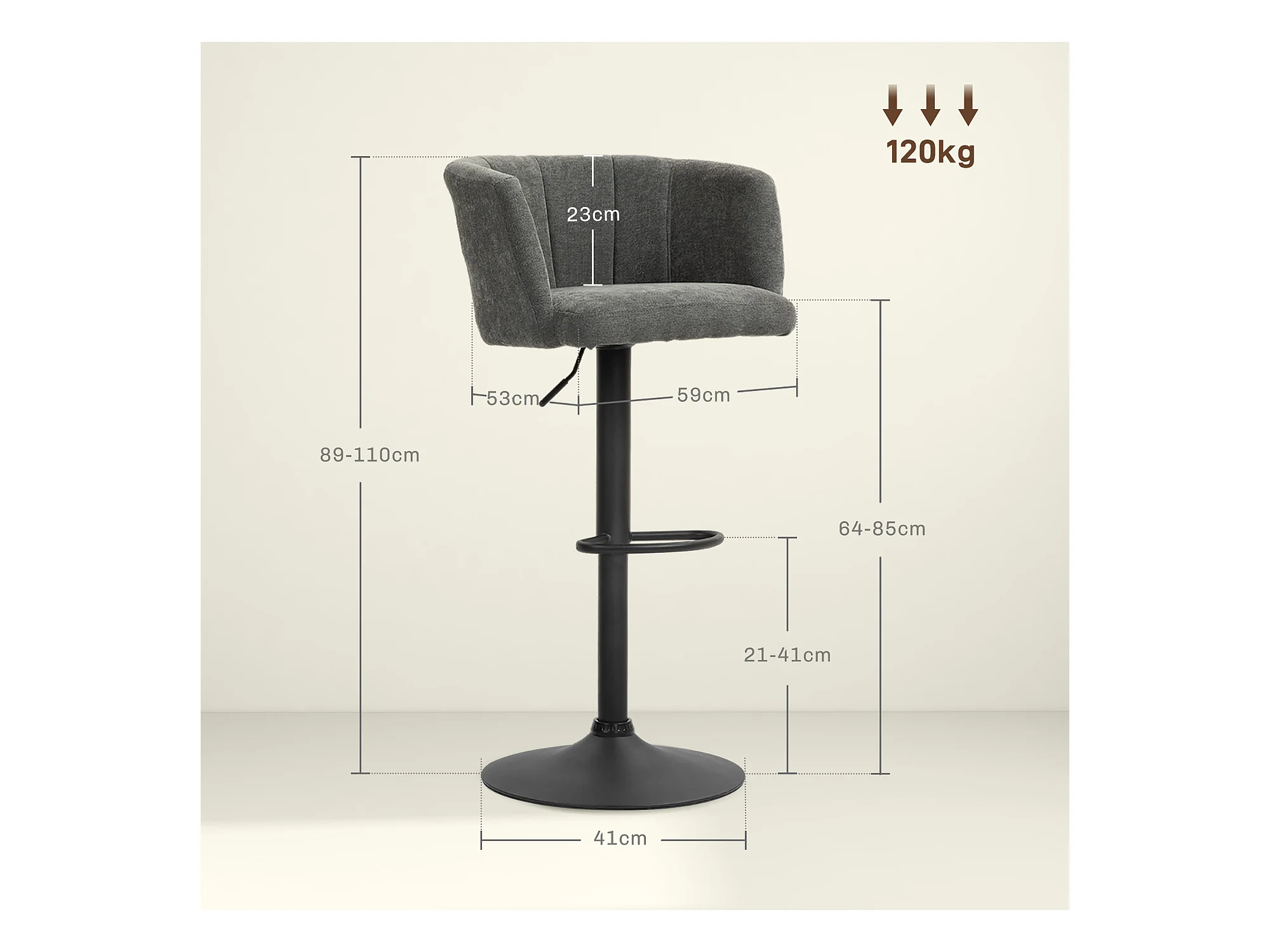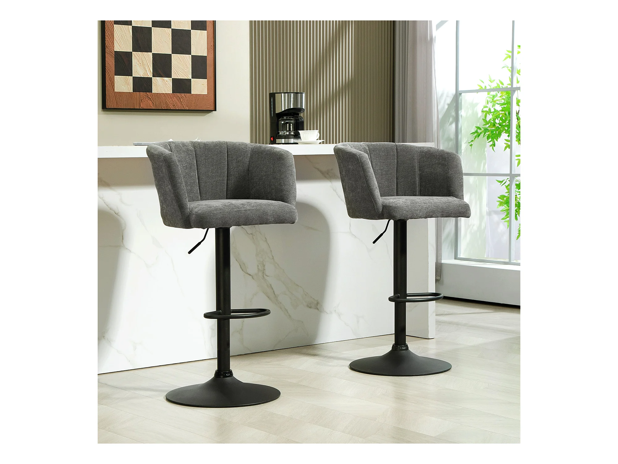 Tabourets de bar réglables, pivotants, structure métal, revêtement lin, gris foncé, lot de 2 (59x53x89-110cm)