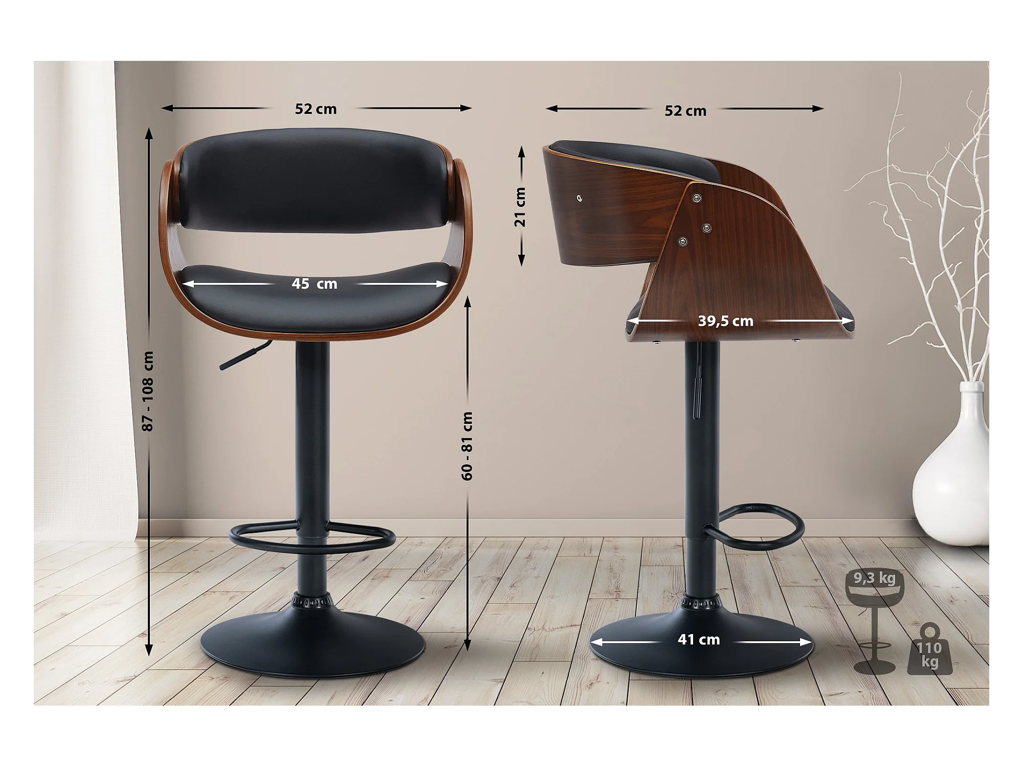 Tabouret de bar - Similicuir & Noir - Noyer / Noir - Portmore
