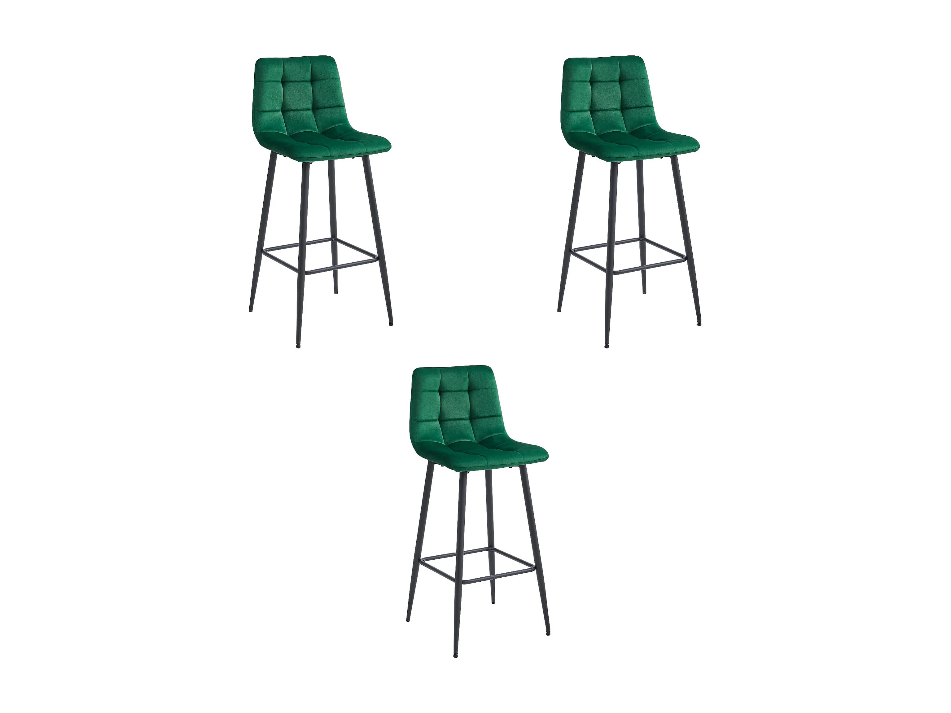 Tabourets de bar Valora TEOTO en velours vert foncé avec pieds en acier noir x3