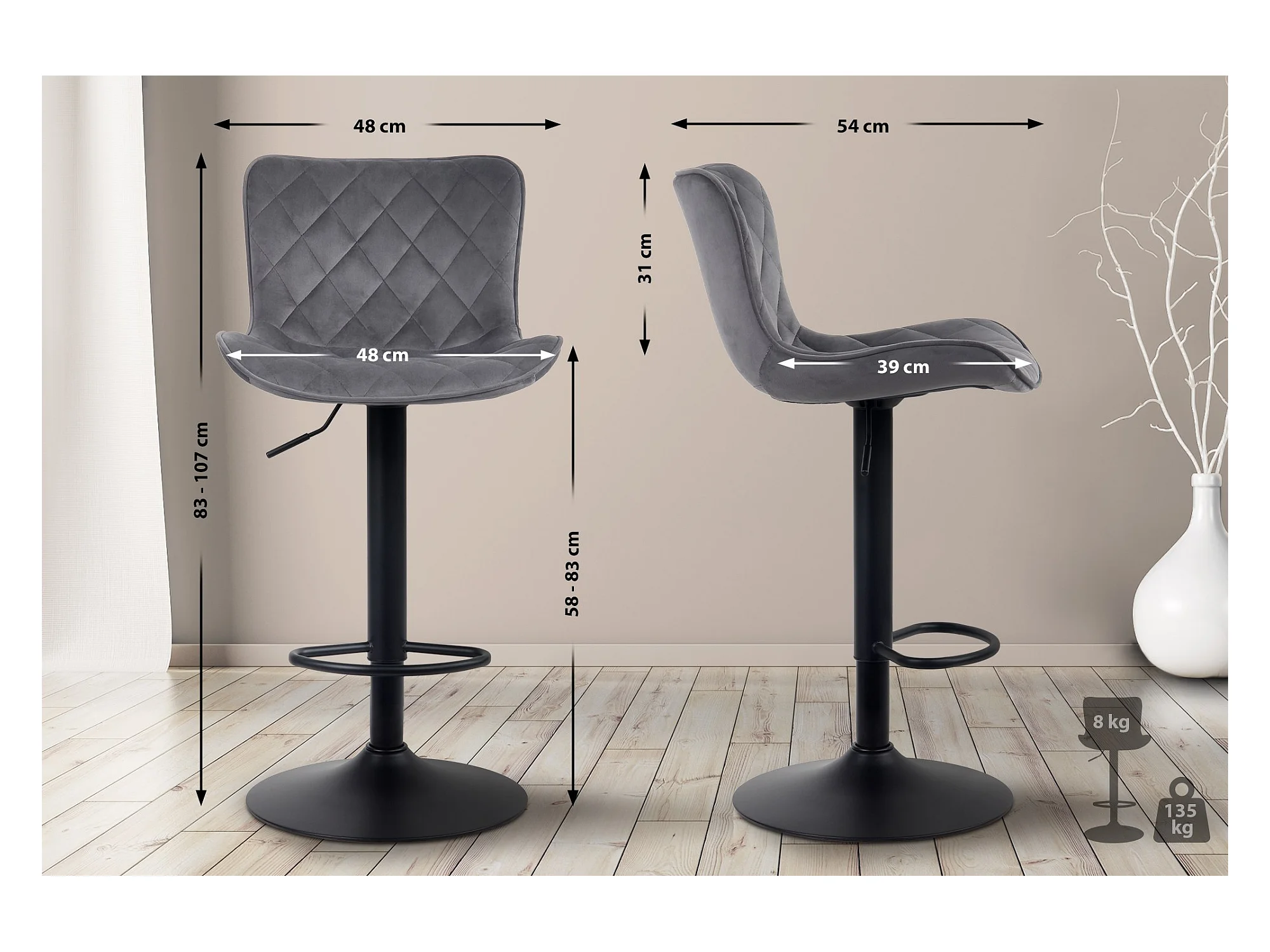 Tabouret de bar - Velours - Gris foncé - Minosa