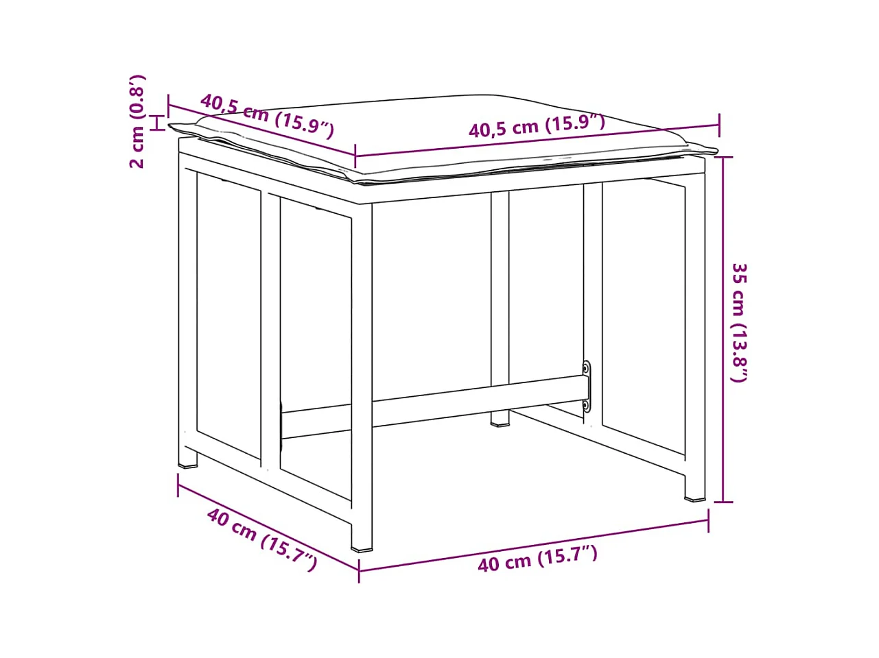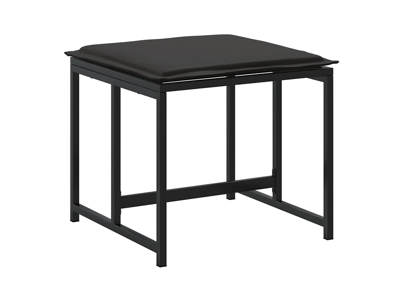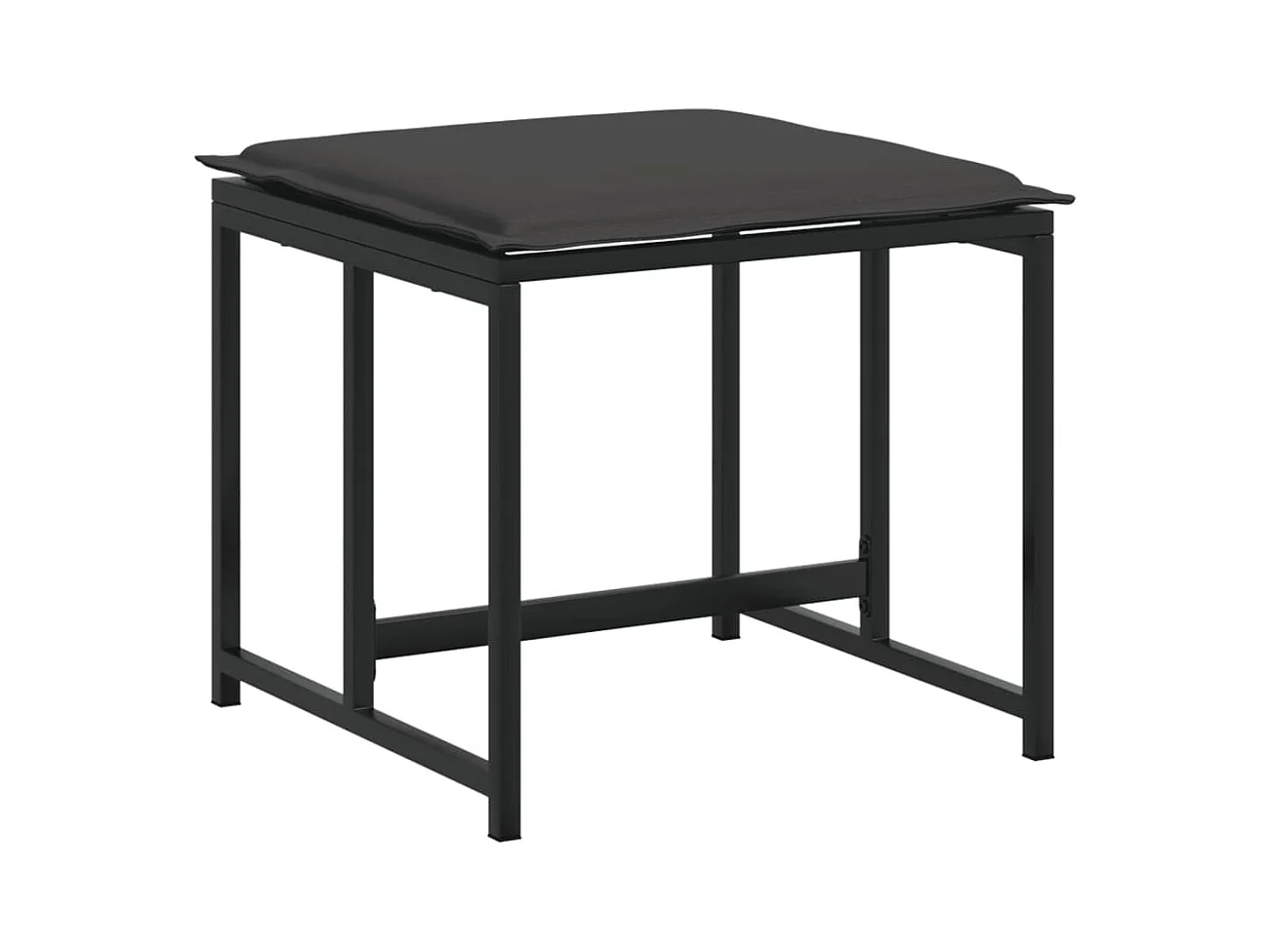 Tabouret de jardin avec coussin noir acier enduit de poudre