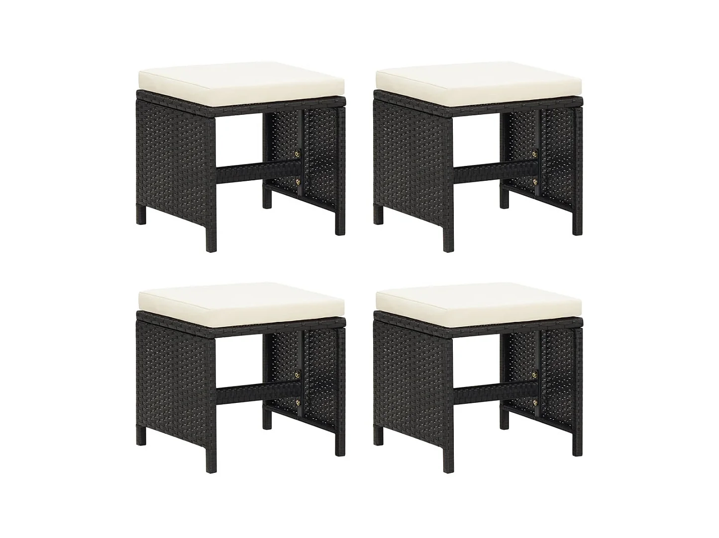 Tabourets de jardin lot de 4 avec coussins Résine tressée Noir