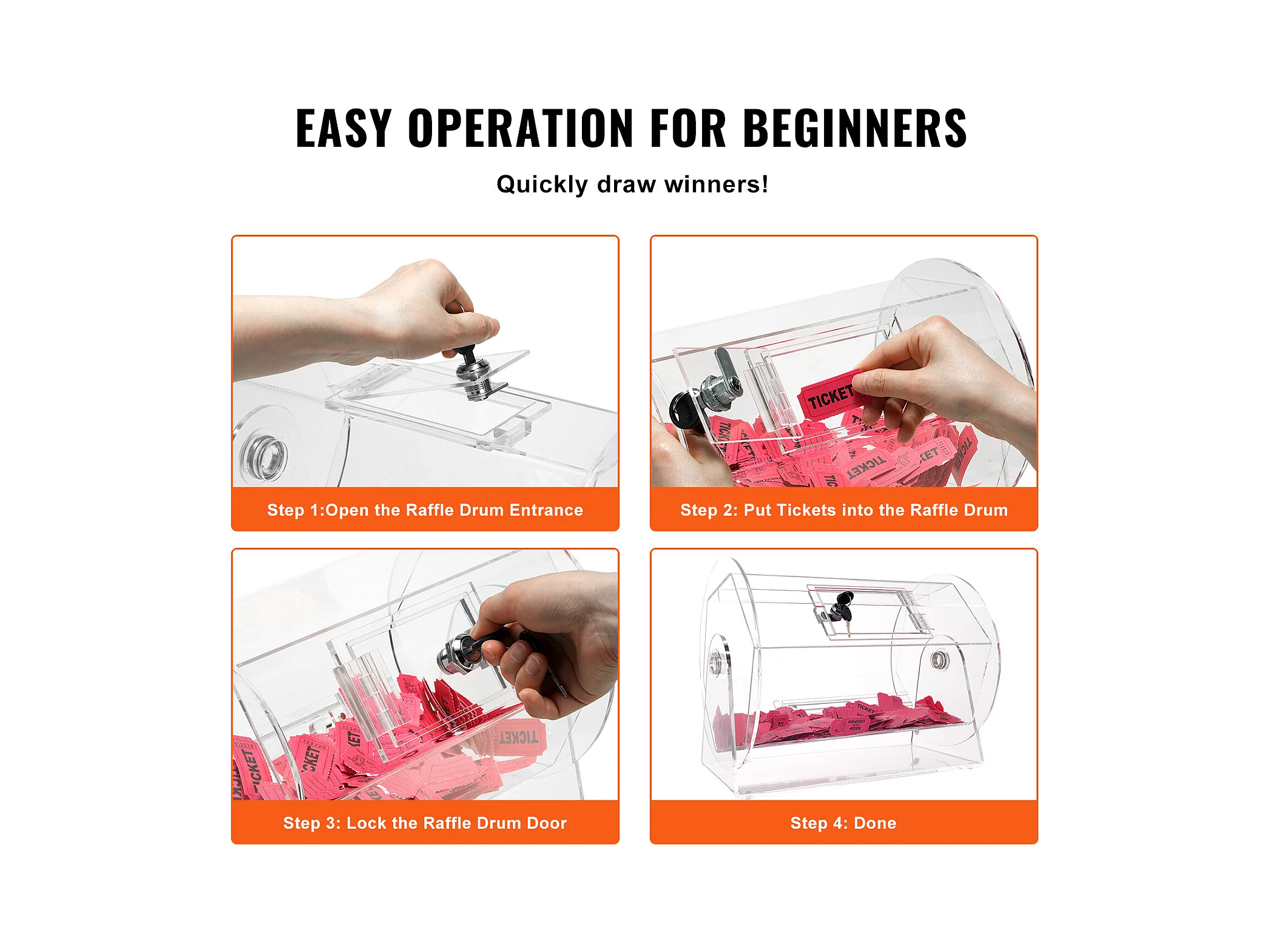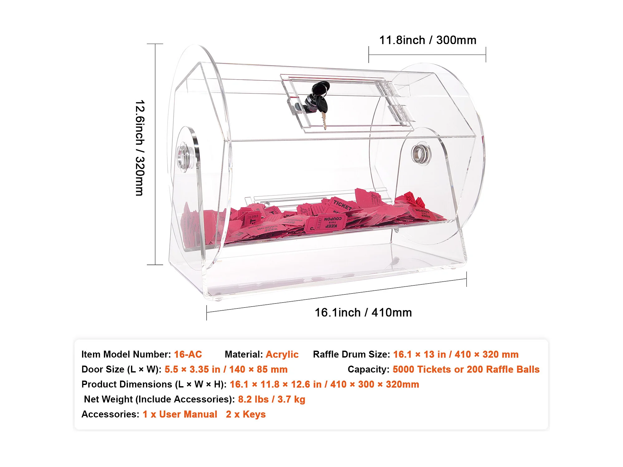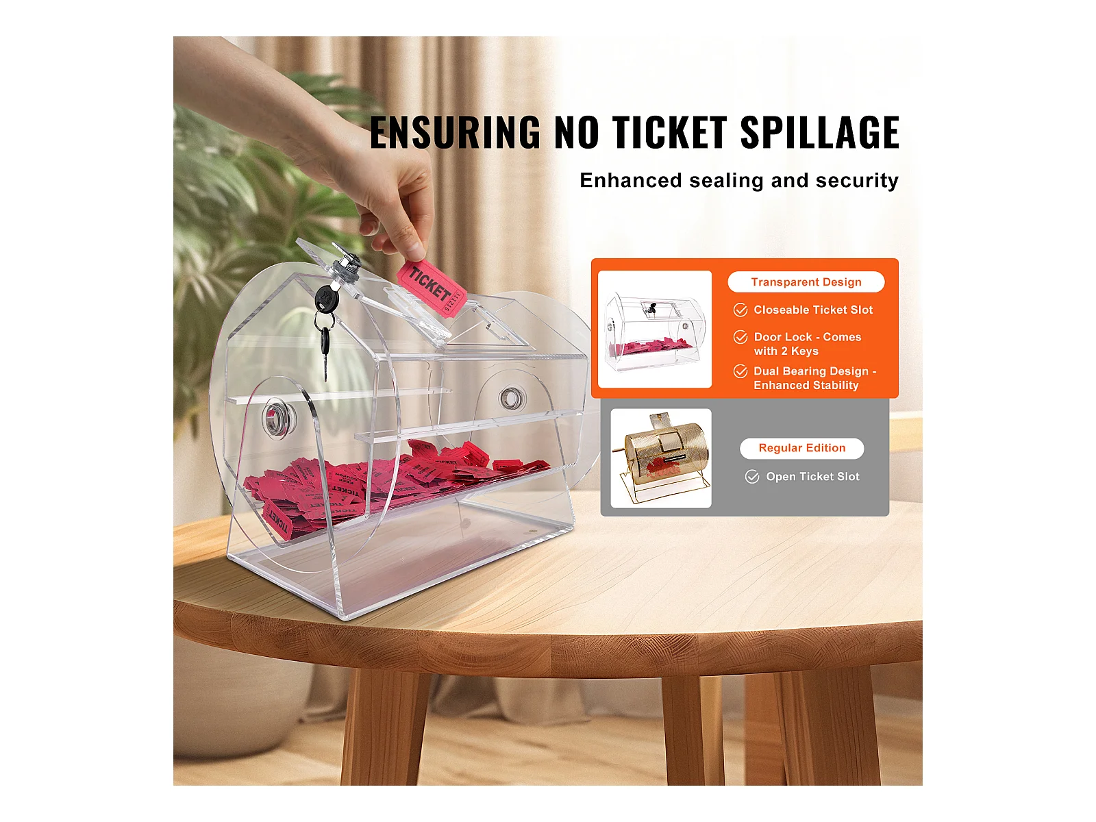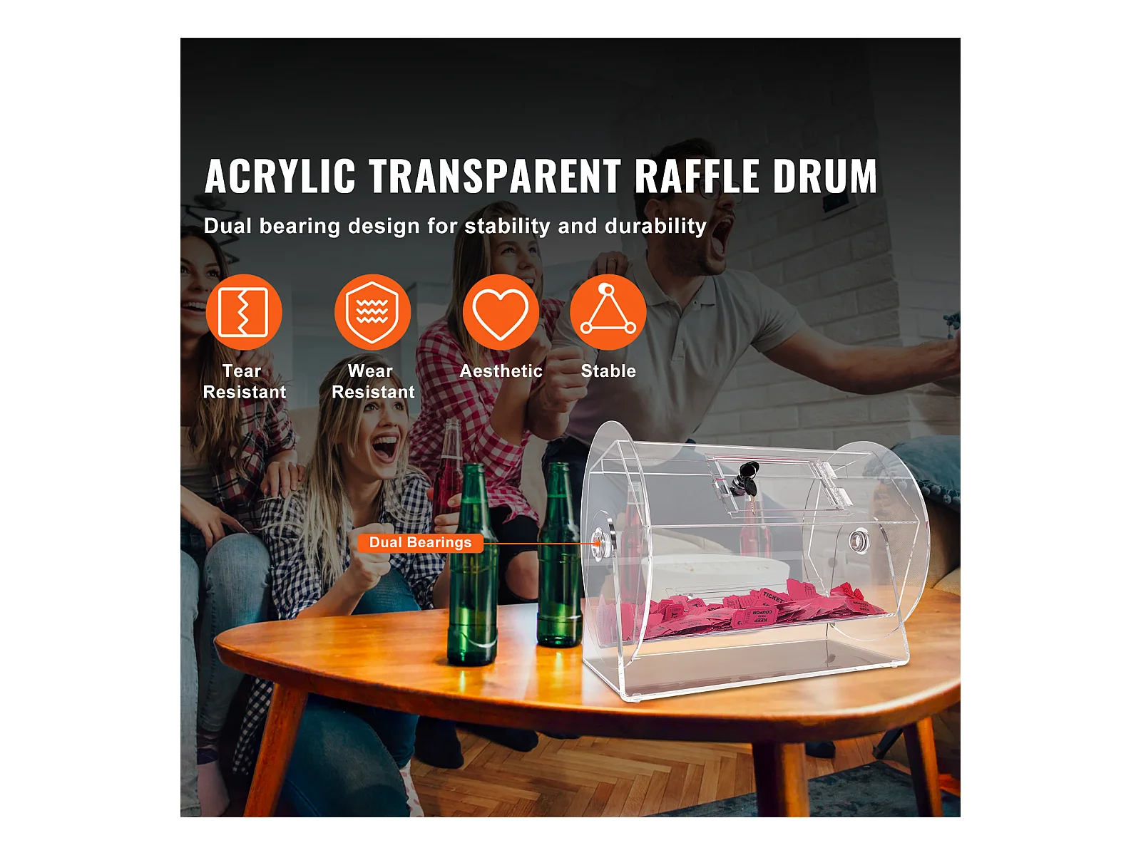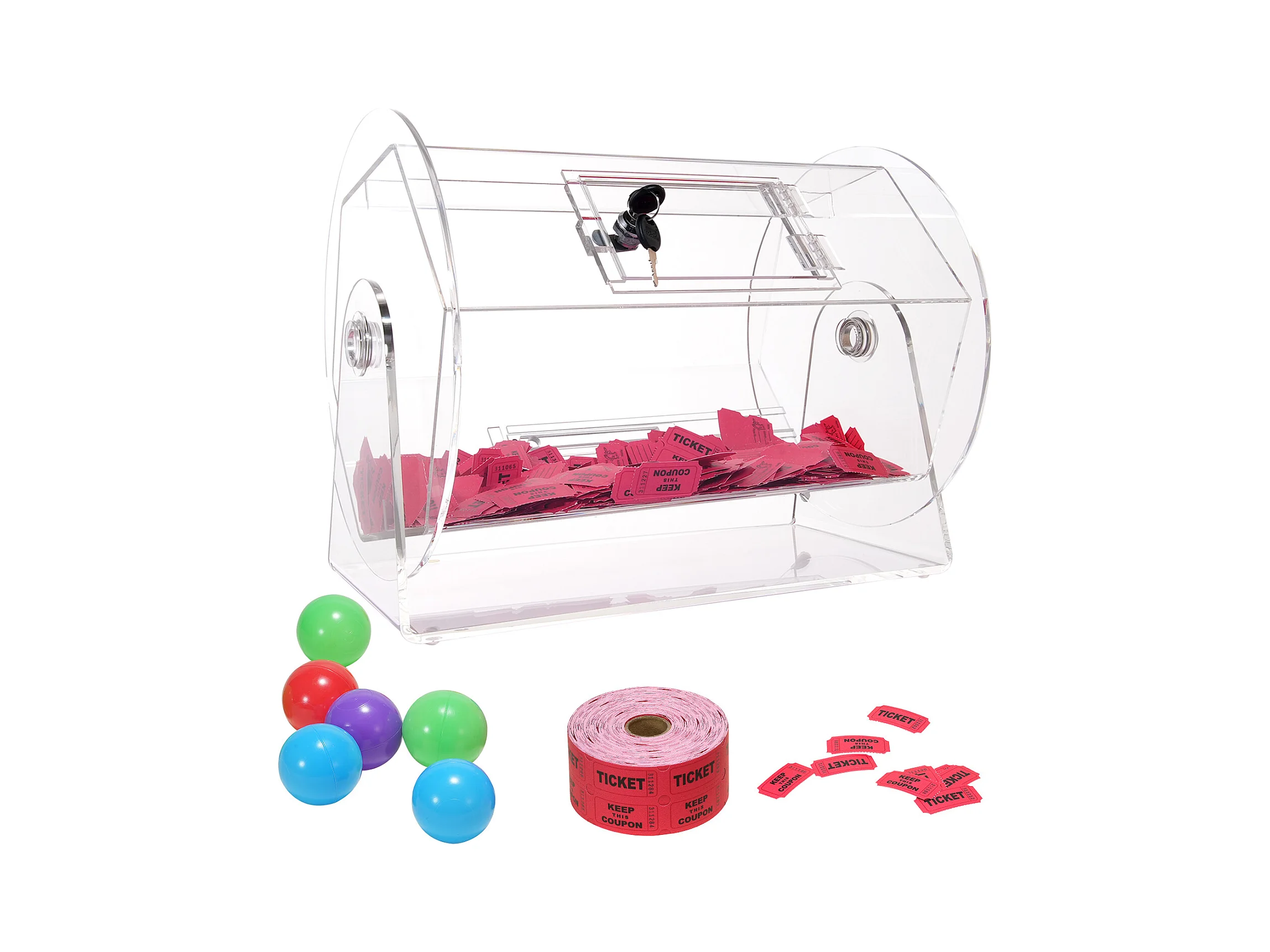 Tambour de Tombola, SucceBuy Tambour de Tombola en Acrylique, Peut Contenir 5,000 Billets/200 Boules de Bingo