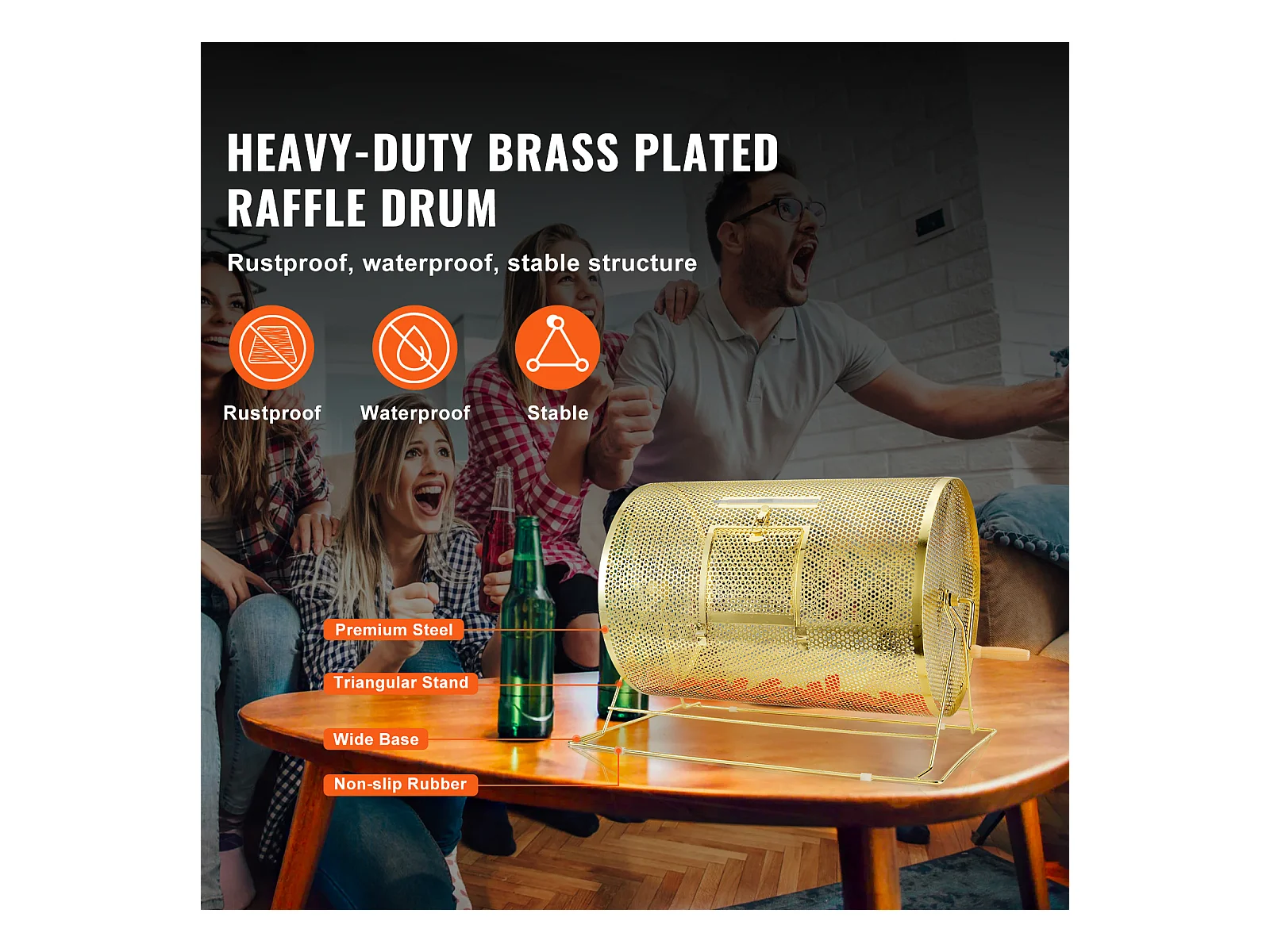 Tambour de Tombola en Laiton Plaqué SucceBuy, Peut Contenir 5 000 Billets/200 Boules de Bingo