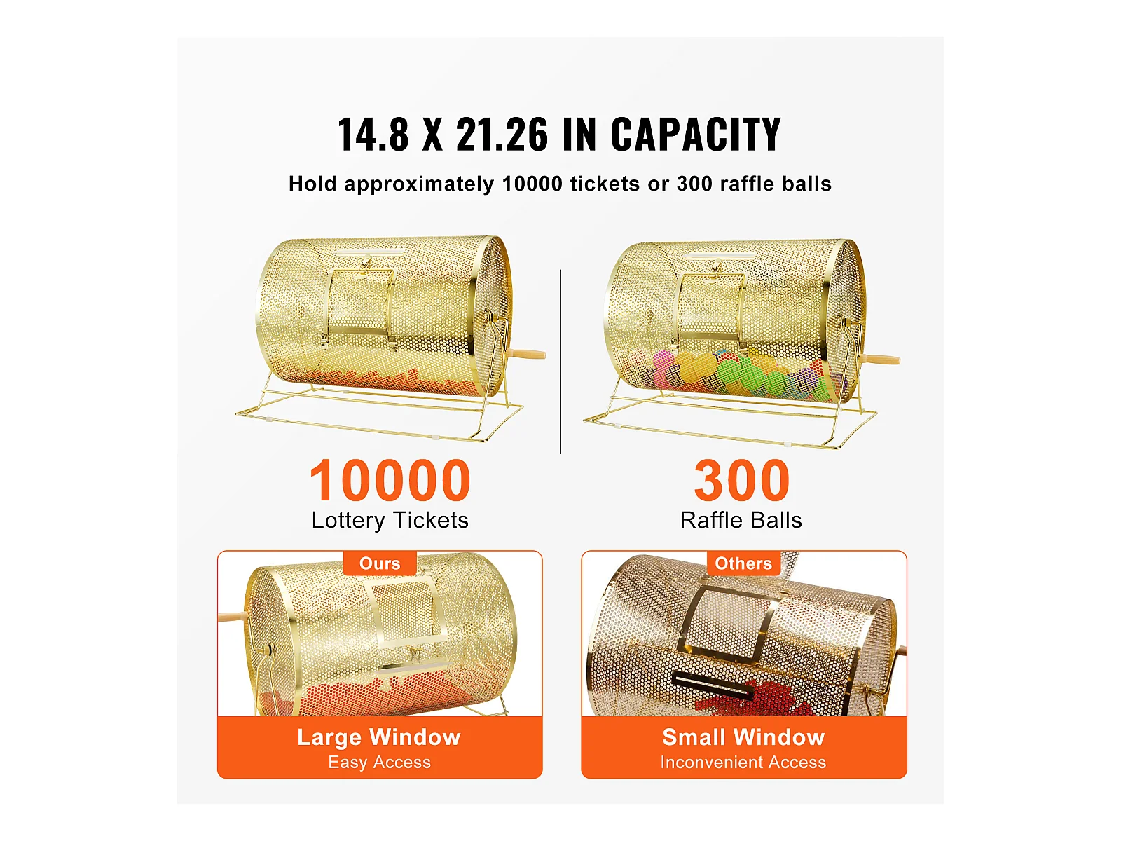 Tambour de Tombola, SucceBuy Tambour de Tombola en Laiton Plaqué, Peut Contenir 10,000 Billets/300 Boules de Bingo