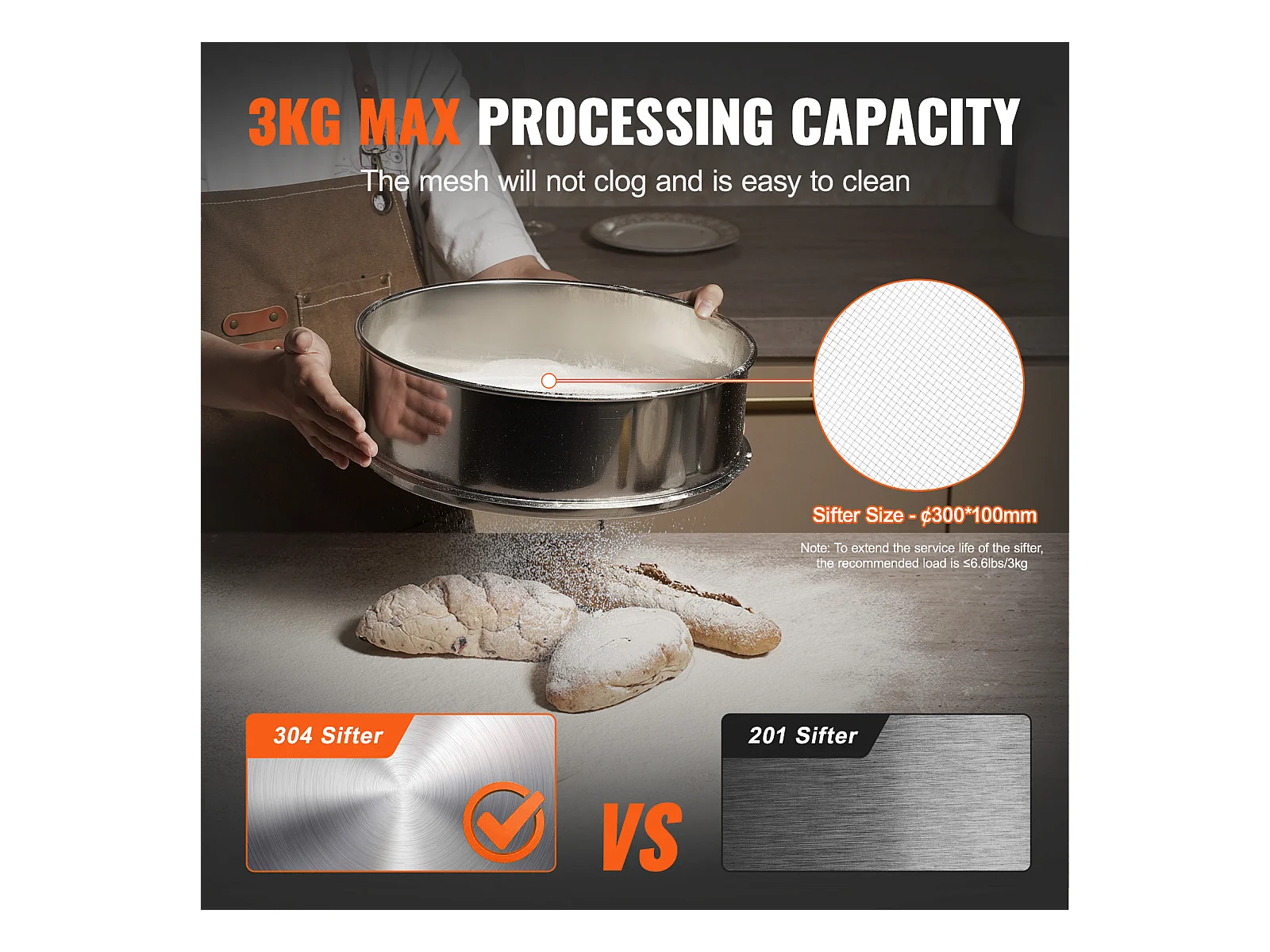 Tamis à Farine SucceBuy Machine de Tamisage Vibrante Électrique avec Tamiseur Automatique 10 + 60 Mesh
