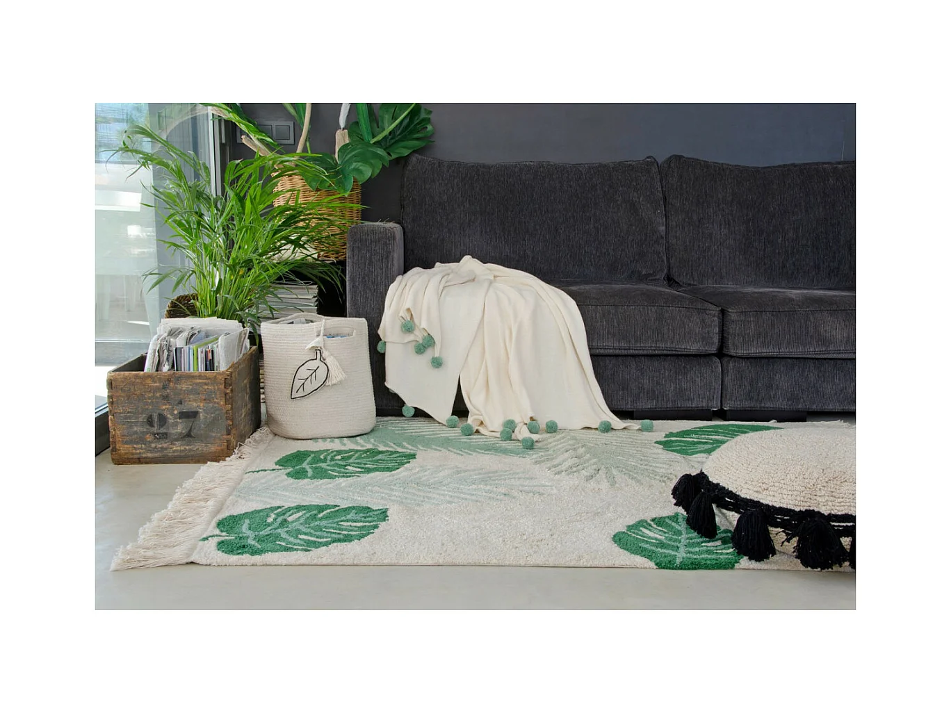 Tapis à courtes mèches lavable en machine Tropical Lorena Canals Rectangulaire Naturel Fai