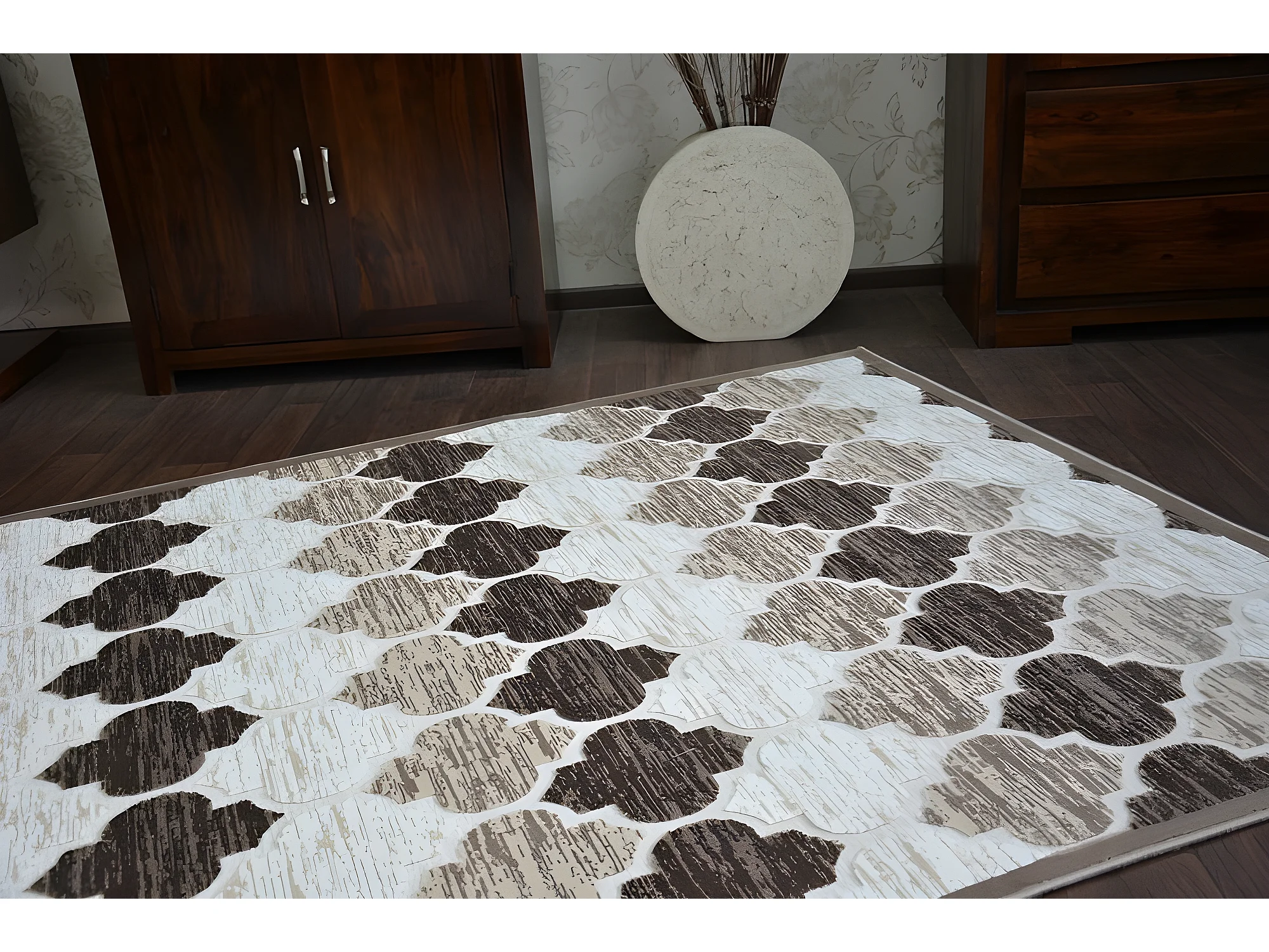 Tapis ACRYLIQUE YAZZ 3766 Beige Foncé/Marron Trèfle Marocain Trellis 160x220 cm
