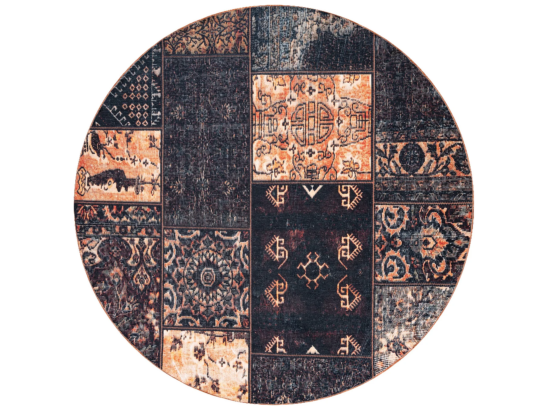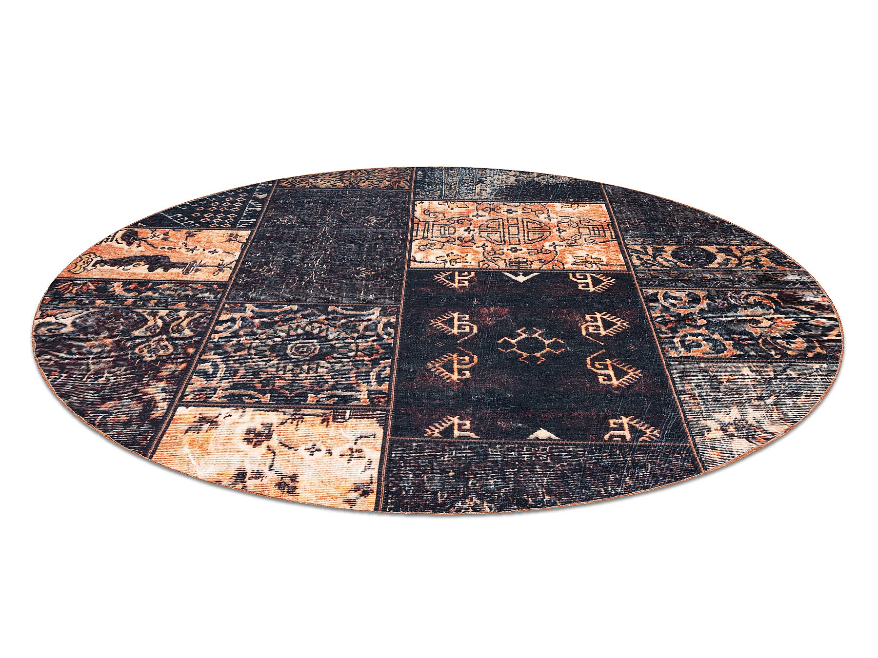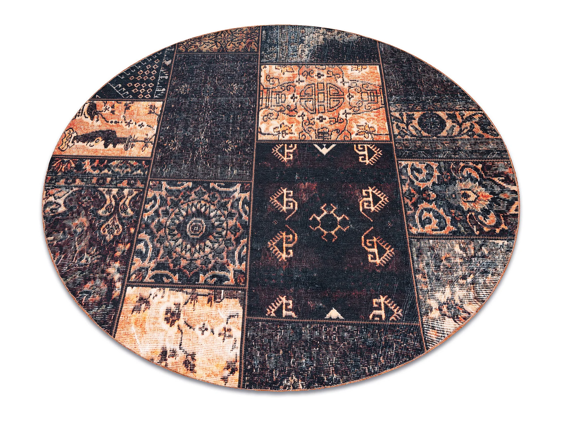 Tapis ANTIKA ancient chocolate cercle, patchwork moderne, lavable grec cercle 200 cm