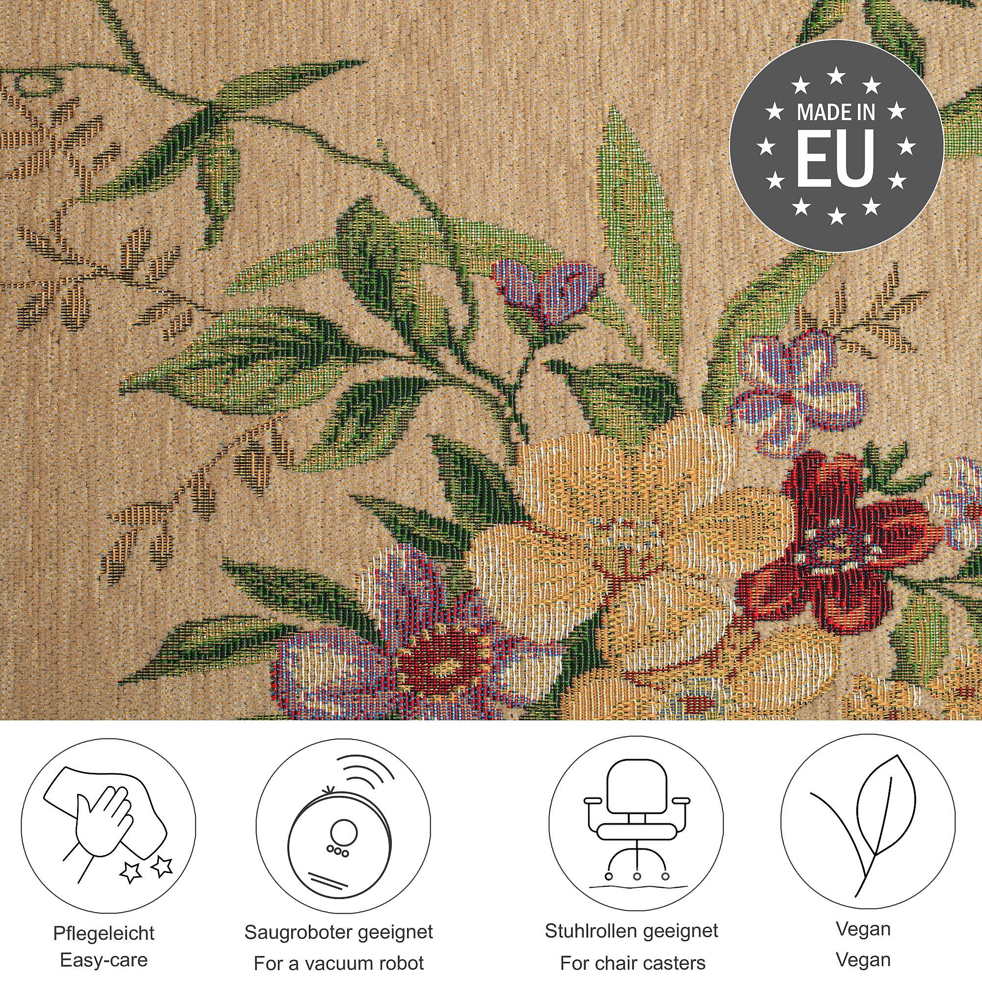 Tapis avec bordure et motif floral 200x290 cm beige Flomi