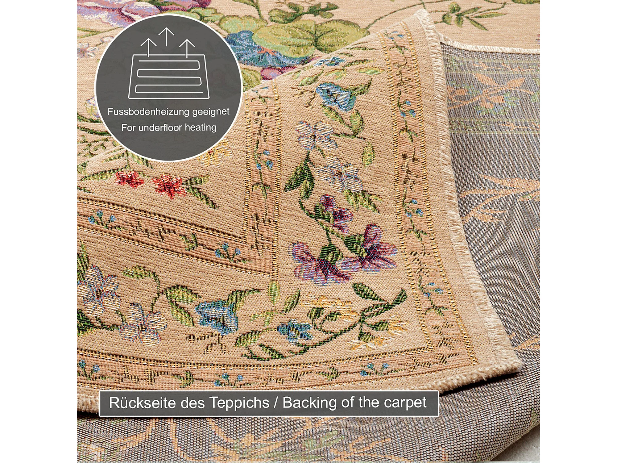 Tapis avec bordure et motif floral 120x170 cm beige Flomi