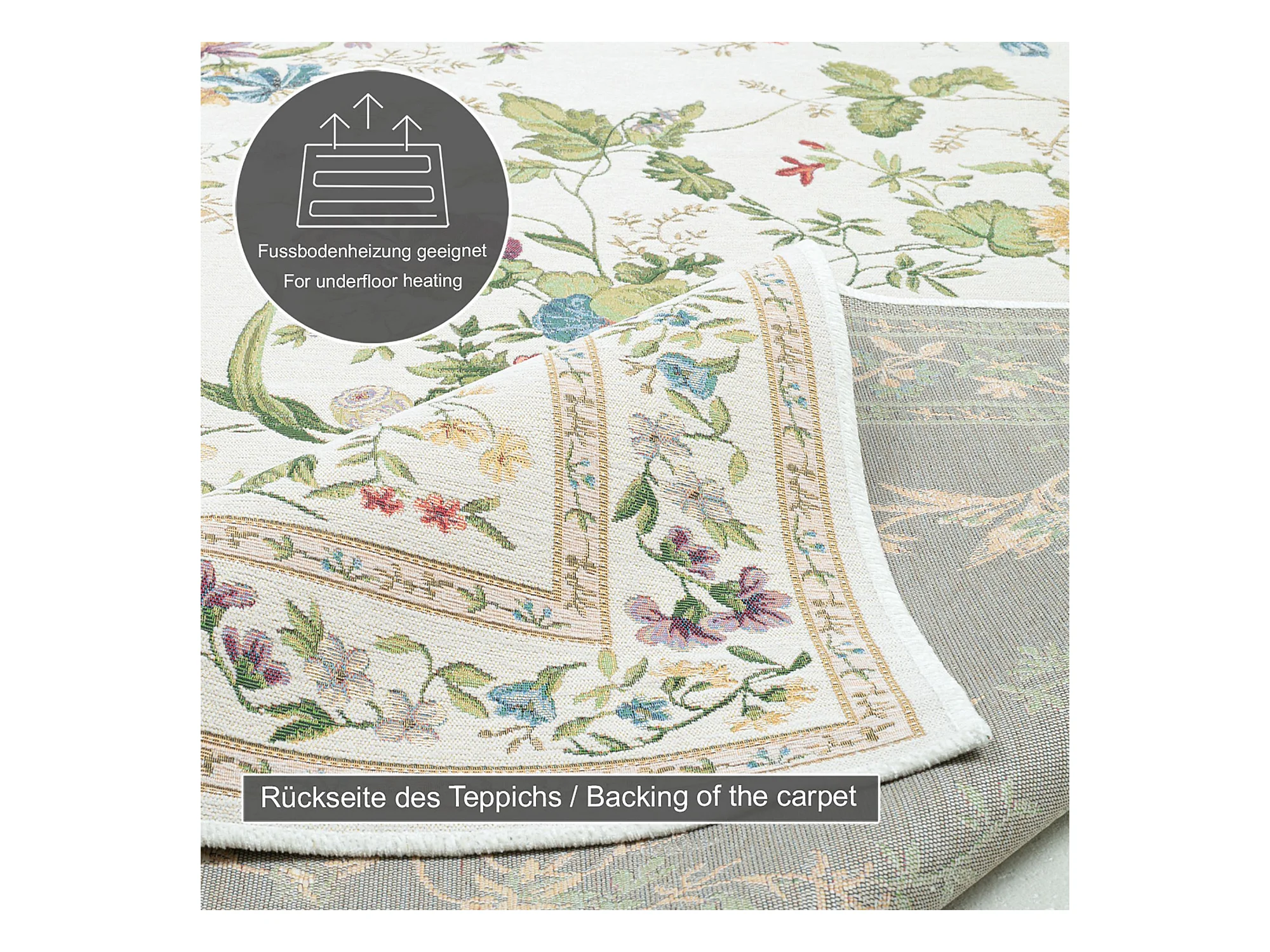 Tapis avec bordure et motif floral 70x120 cm crème Flomi