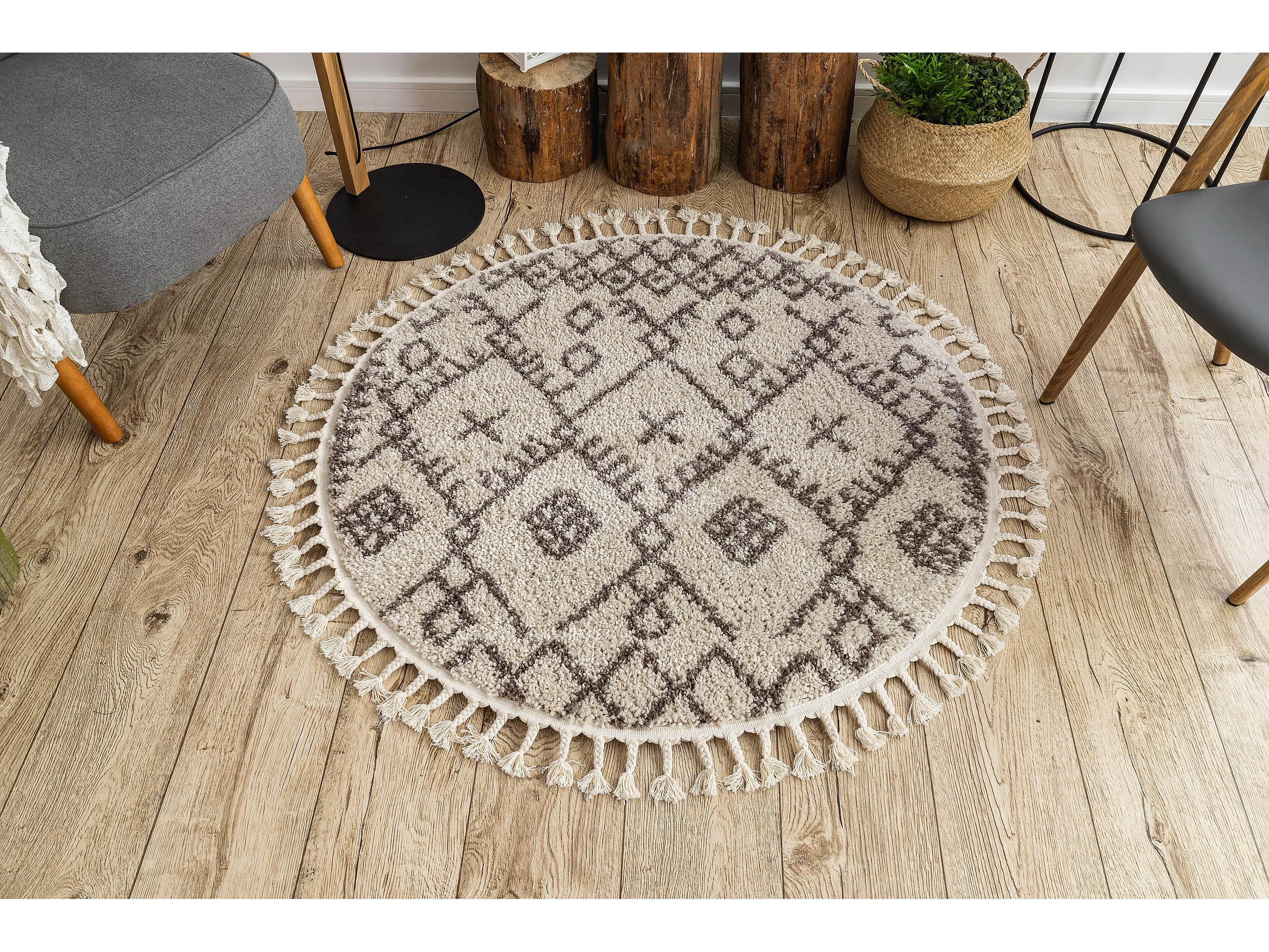 Tapis BERBER TANGER B5940 cercle crème et marron Franges berbère mar cercle 160 cm